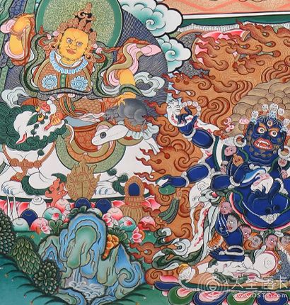 | 唐卡是歷史的瑰寶,現(xiàn)已被例入國(guó)家非物質(zhì)文化遺產(chǎn)名錄,得到了高度的重視和保護(hù)。同時(shí)由于顏料的珍稀、繪制周期長(zhǎng)、工藝復(fù)雜大大增強(qiáng)了其珍藏價(jià)值。一幅好的作品可遇不可求,近年來唐卡已成為收藏界炙手可熱的藏品。 | 唐卡的形式便于攜帶,其內(nèi)容體現(xiàn)了藏傳佛教的莊重、神圣、華貴,被稱為“移動(dòng)的佛像”。同時(shí)也是修行者積累善業(yè),追尋心靈的平靜與安寧的一個(gè)過程。 | 唐卡的內(nèi)容包羅萬象,它以圖像的方式承載著藏族文化精髓,是藏族智慧的結(jié)晶,廣泛傳播了藏地的文化、歷史和宗教理論。 | 唐卡絢麗的色彩、流暢的線條、嚴(yán)謹(jǐn)?shù)慕Y(jié)構(gòu),都充滿著濃郁的高原和游牧民族風(fēng)情,無疑是難得的藝術(shù)珍品。值得一提的是唐卡繪制顏料全部為天然礦物顏料,畫面效果艷麗,可以保存千年而不變色。 |
