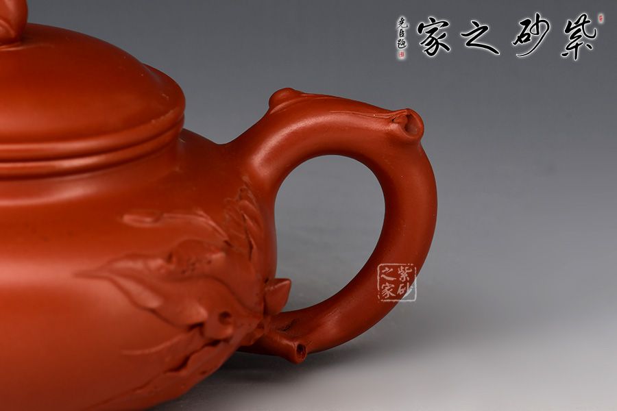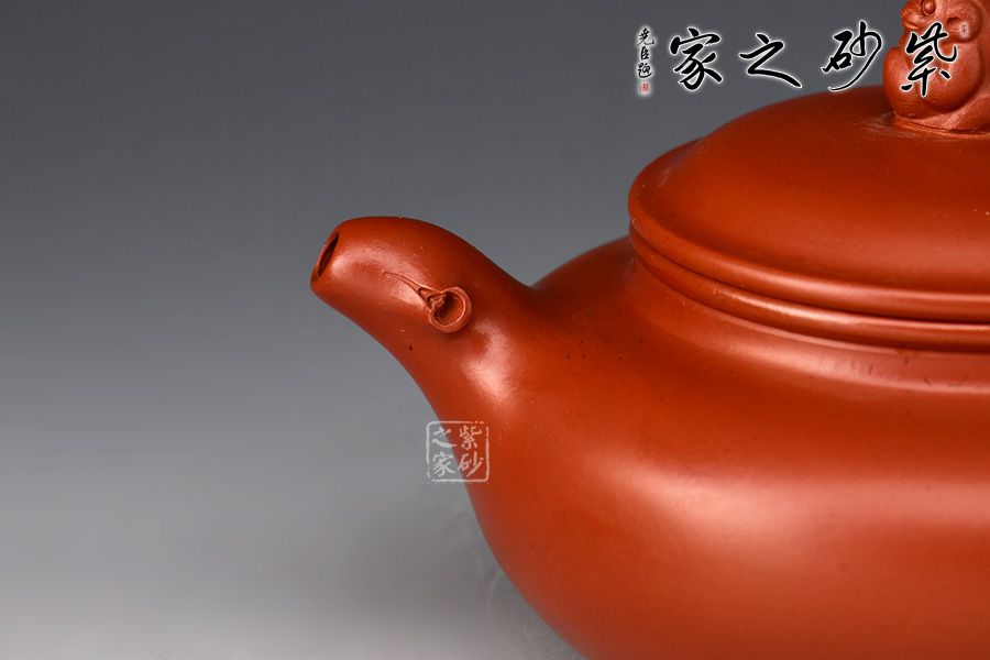 特點:質感綿密、緊實細緻,持之扎實沉重、紅潤豔麗,泥中極品,無以倫比;泥胚含少許原礦顆粒,沖淋熱水后色變極大,呈紅中帶紫,養壺易現“包漿”之美。