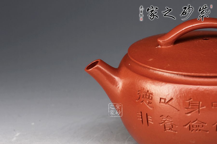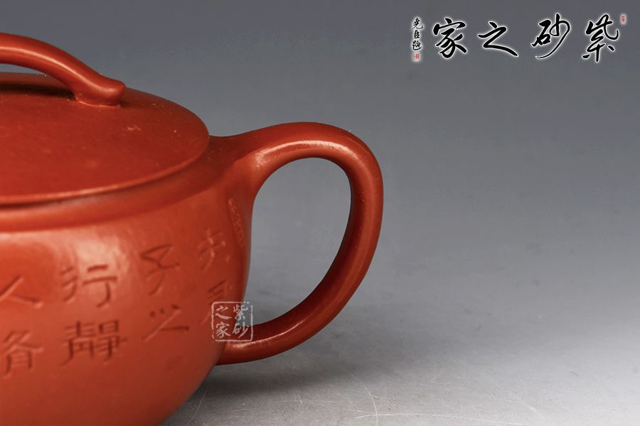 特點:質(zhì)感綿密、緊實細(xì)緻,持之扎實沉重、紅潤豔麗,泥中極品,無以倫比;泥胚含少許原礦顆粒,沖淋熱水后色變極大,呈紅中帶紫,養(yǎng)壺易現(xiàn)“包漿”之美。