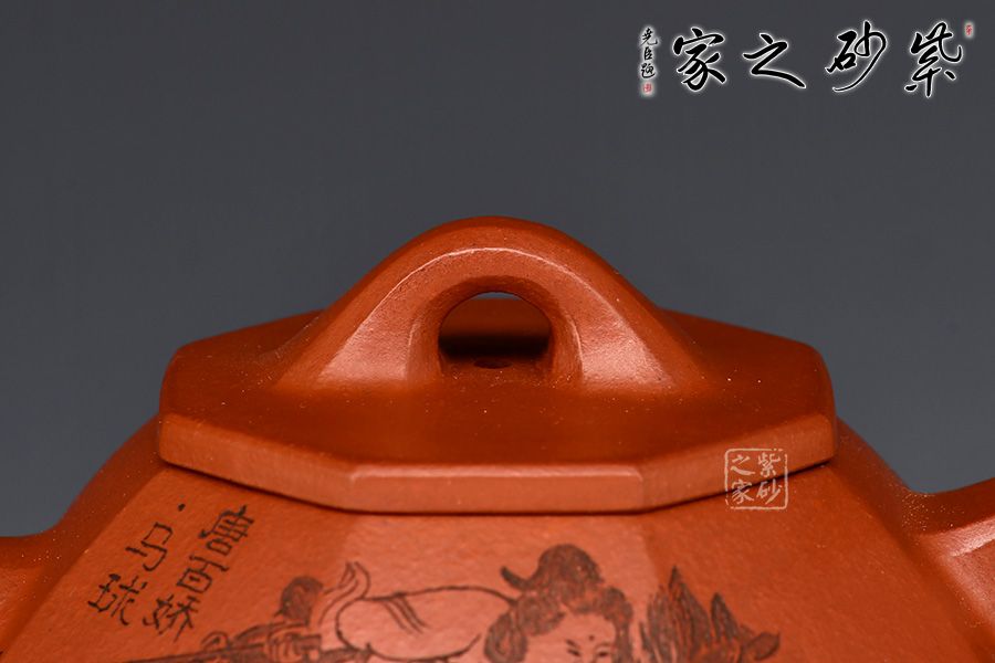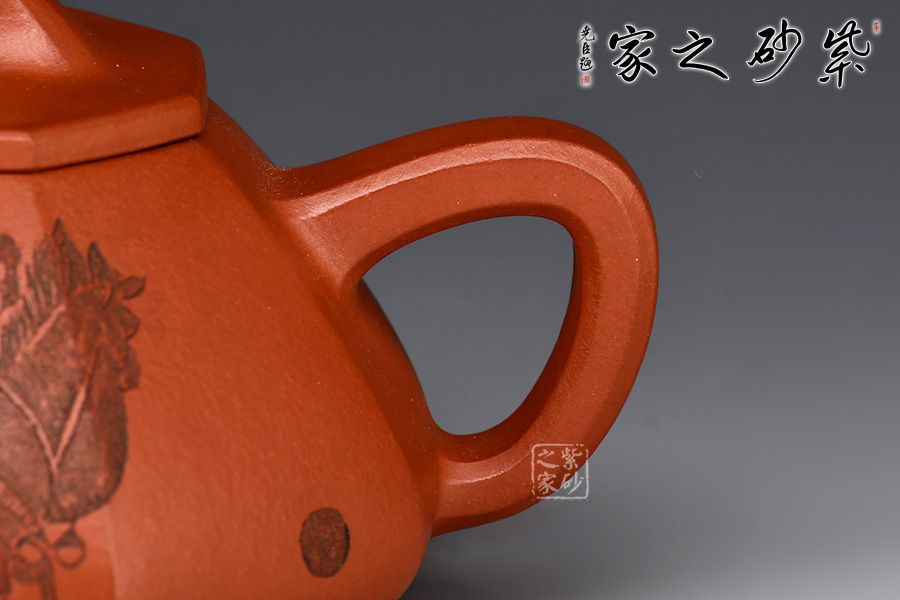 特點:質(zhì)感綿密、緊實細緻,持之扎實沉重、紅潤豔麗,泥中極品,無以倫比;泥胚含少許原礦顆粒,沖淋熱水后色變極大,呈紅中帶紫,養(yǎng)壺易現(xiàn)“包漿”之美。