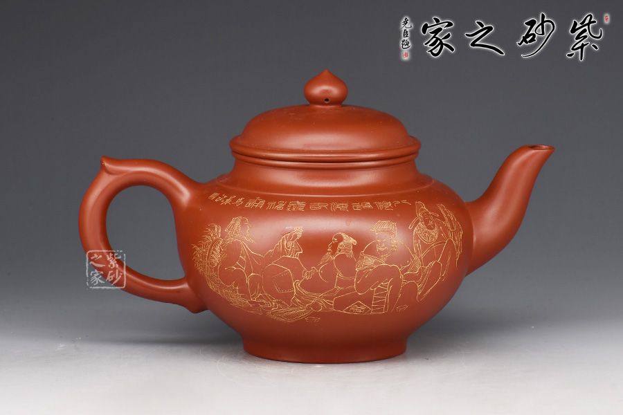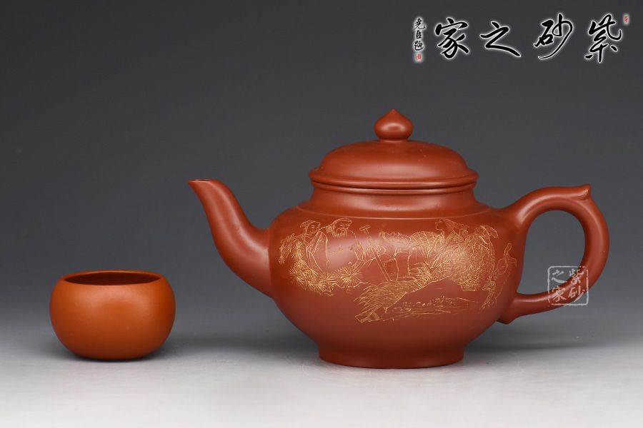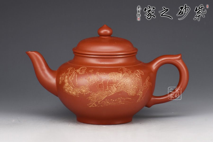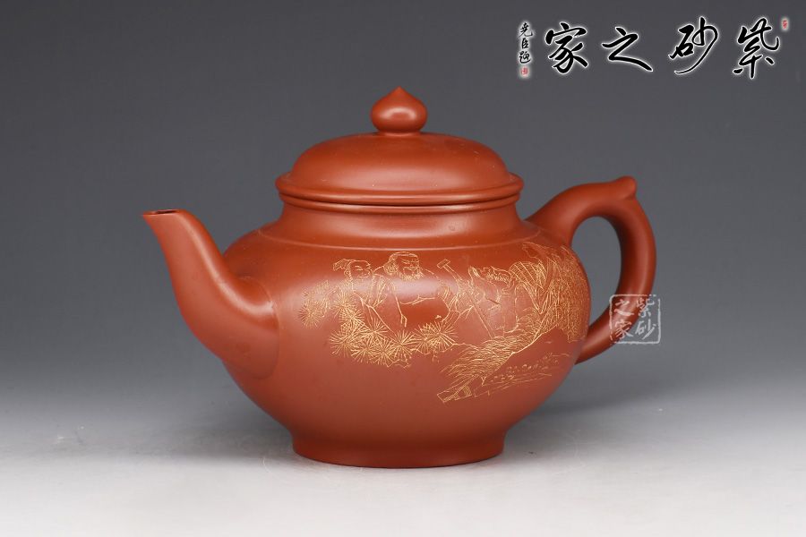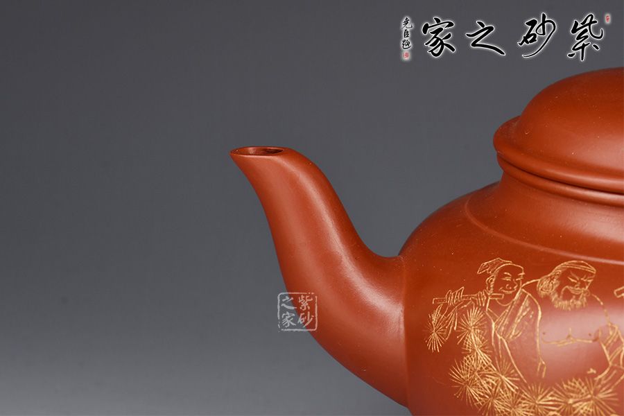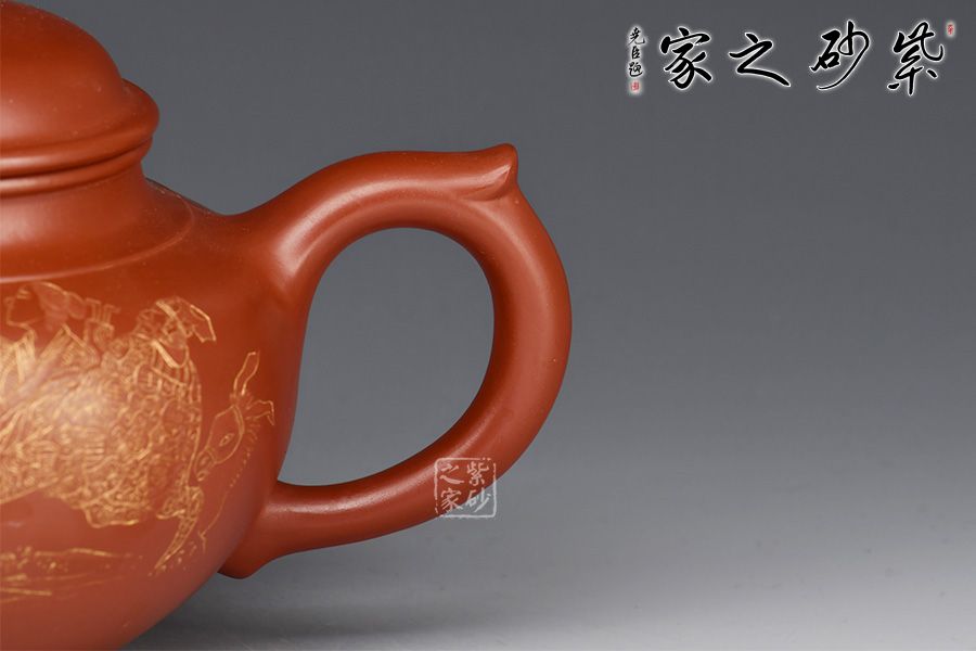 大紅袍泥料制作,氣質(zhì)高雅,加之壺身的描金工藝,使人有鴻運(yùn)當(dāng)頭之感。