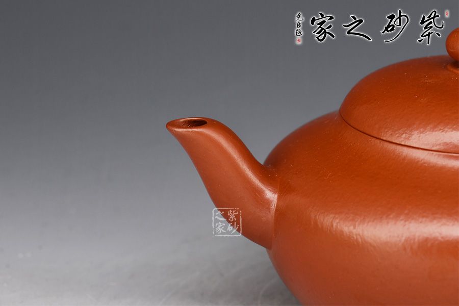 特點:質(zhì)感綿密、緊實細(xì)緻,持之扎實沉重、紅潤豔麗,泥中極品,無以倫比;泥胚含少許原礦顆粒,沖淋熱水后色變極大,呈紅中帶紫,養(yǎng)壺易現(xiàn)“包漿”之美。