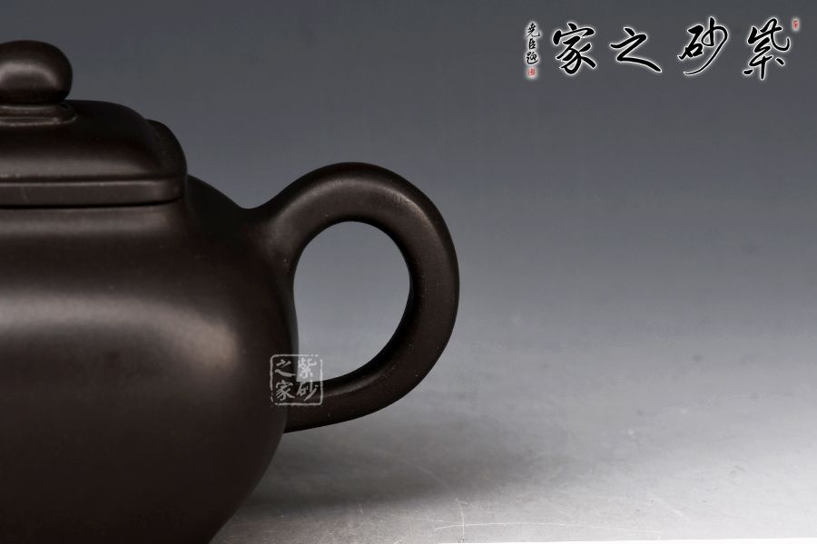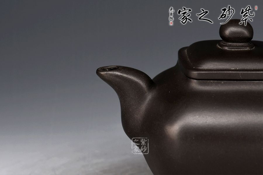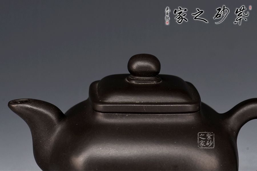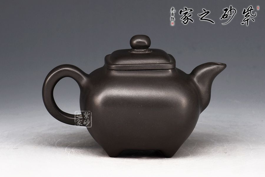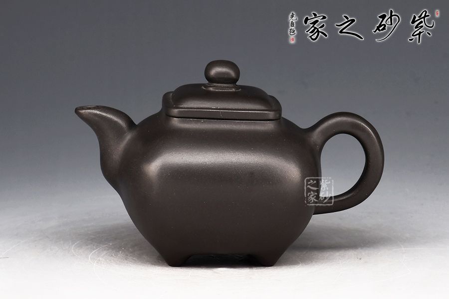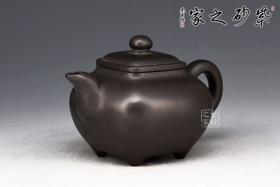 傳爐是紫砂壺的一個(gè)經(jīng)典器形,其制造型取材于青銅器。器身形狀以方器為基本形,但方中寓圓,比一般方器多了一份圓潤(rùn)之美。壺嘴的造型難度亦高,方中帶圓,圓里寓方,三彎流式曲折有致,出水流暢。壺蓋延續(xù)了全器造型特微,方型圓角,壓蓋形式,制作精良的壺蓋要能四面通轉(zhuǎn)無(wú)礙,且面面俱到,能接續(xù)全壺氣韻。底足皆采用四顆“釘足”形式,且多屬短柱型,精巧別致,落地穩(wěn)重。