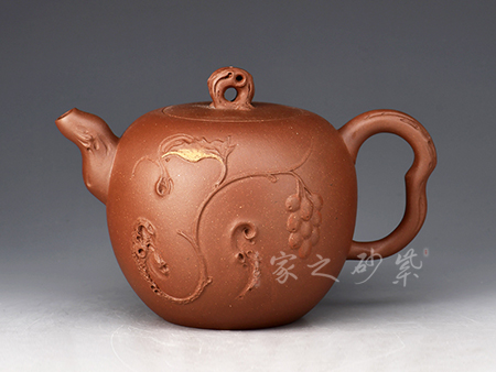 泥性:原礦因含緞泥、紅泥、紫泥等諸多共生礦,陶之后,于深沉之“橙紅色”底上,滿佈五彩斑斕的粗細(xì)、深淺之紅、黃星斑點(diǎn)。