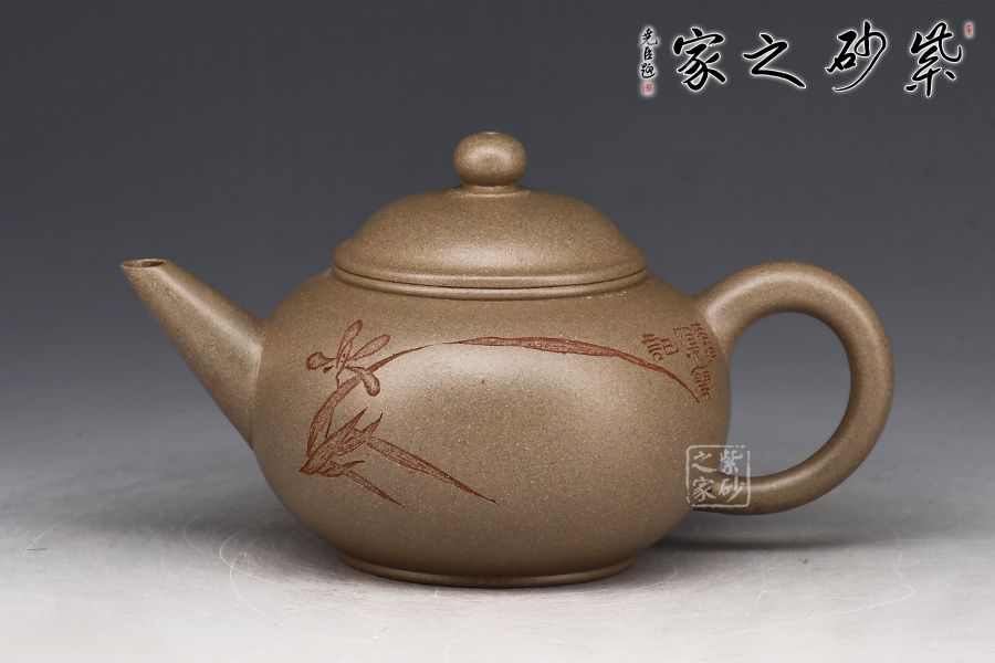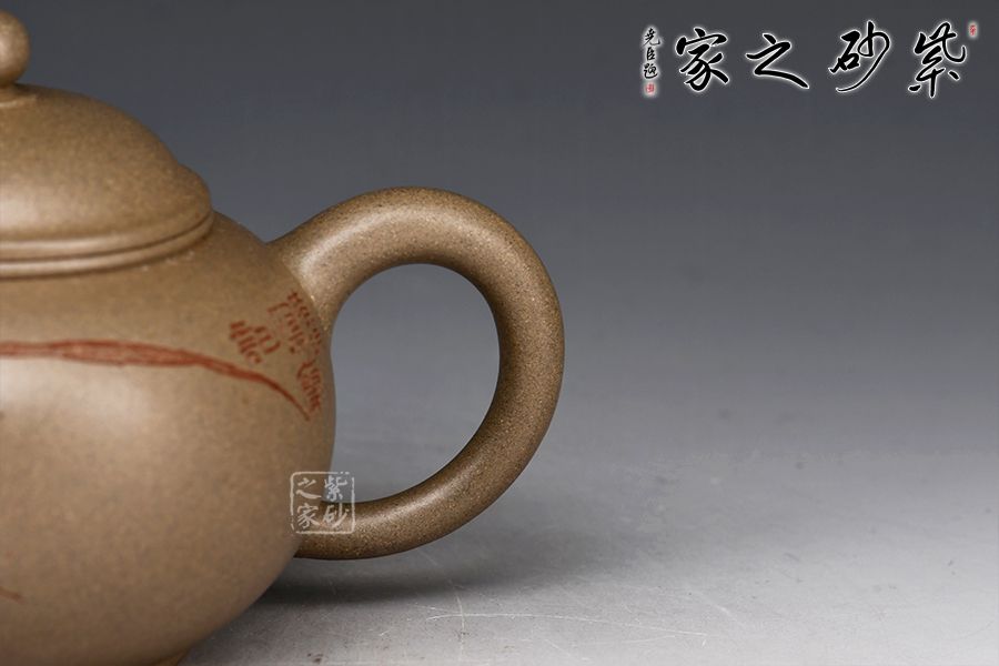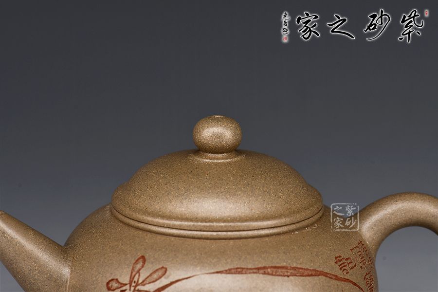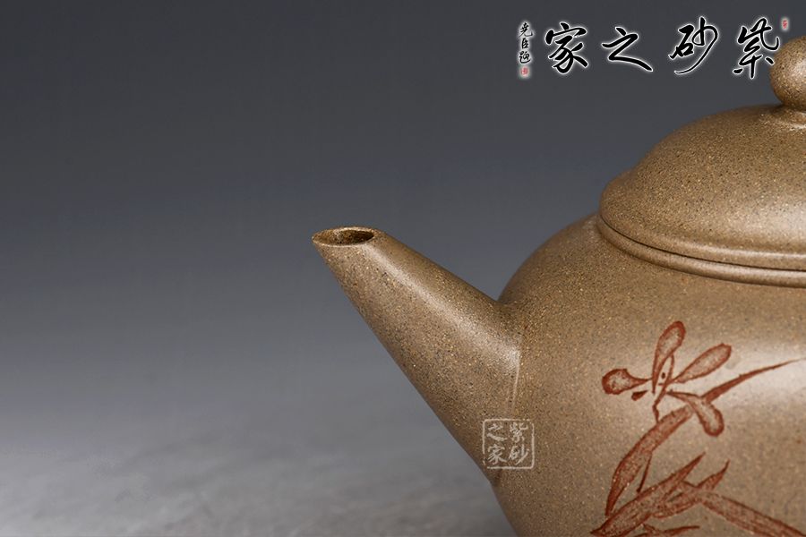 水平四平八穩(wěn),柔中帶剛,又有陶刻裝飾,增加此壺的觀賞性,實用性亦高,不可多得的作品之一。