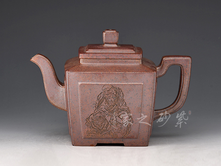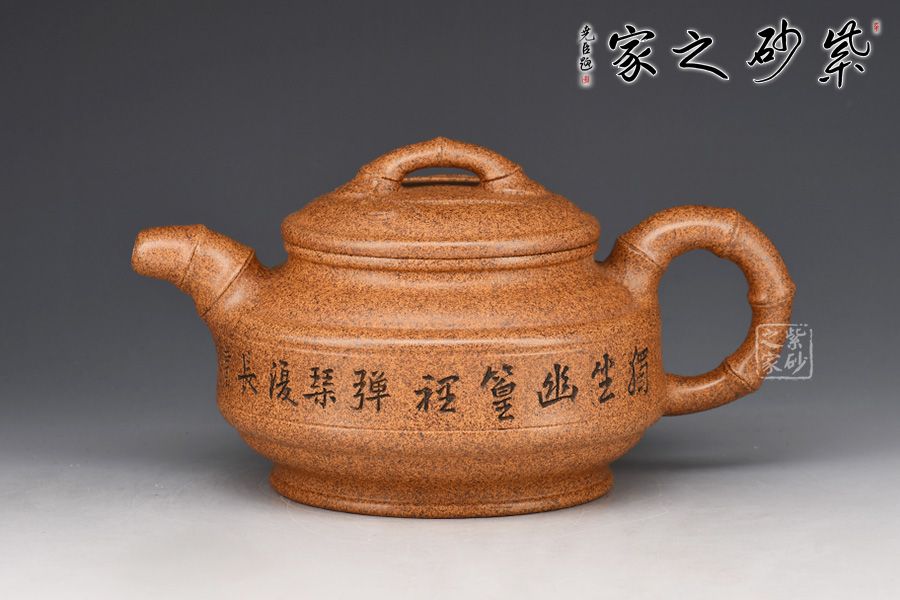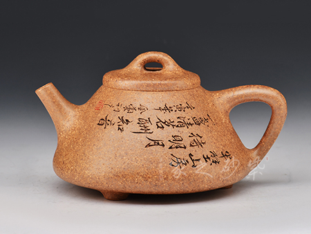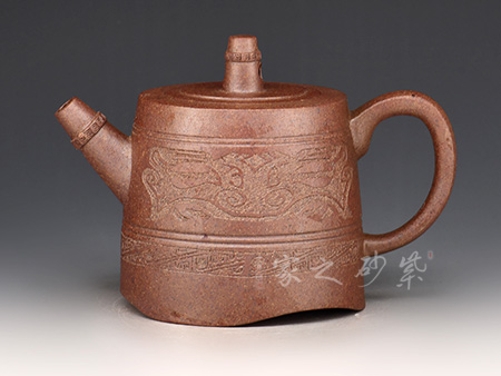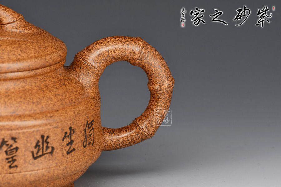 在當今現代科技年代才出現特高溫窯能燒制成型,所以單獨以此礦料練成紫砂泥,因此泥料為黃龍山原礦紫砂泥,質地堅硬,吃溫特高(1350°),所稱以“龍骨”燒制成型顏色猶如鐵壺,泛金屬色,泥料內含有點點金色紫砂顆粒,注以“金砂”,具有軟化水質的作用。