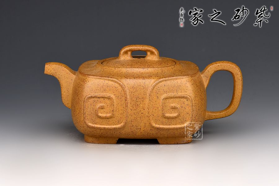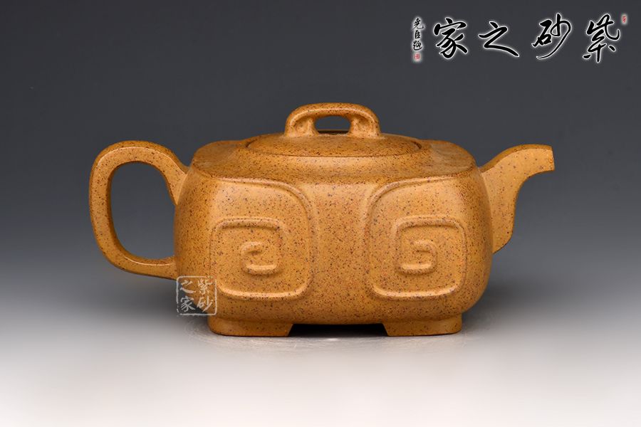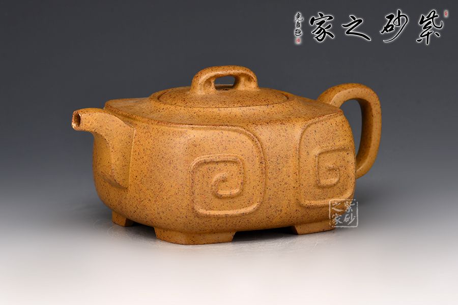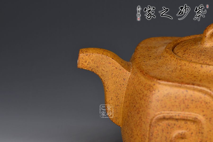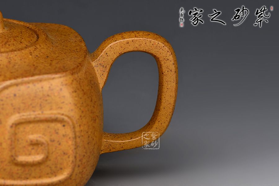 細(xì)觀此壺,雖名為四方,卻由四面曲面構(gòu)成,方圓相濟,光潔素雅;短彎流,耳形把;壺鈕、壺蓋及壺腹處均有如意筋紋,線條流暢,象征著吉祥如意的美好寓意。