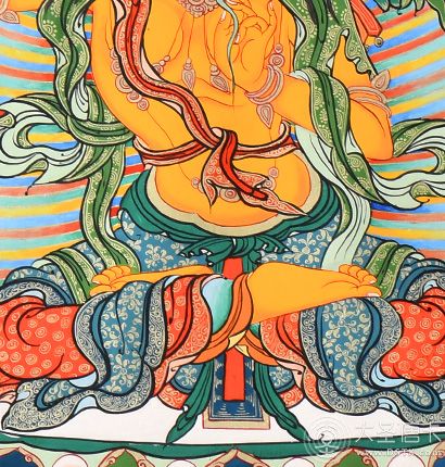 | 唐卡是歷史的瑰寶,現(xiàn)已被例入國家非物質文化遺產(chǎn)名錄,得到了高度的重視和保護。同時由于顏料的珍稀、繪制周期長、工藝復雜大大增強了其珍藏價值。一幅好的作品可遇不可求,近年來唐卡已成為收藏界炙手可熱的藏品。 | 唐卡的形式便于攜帶,其內(nèi)容體現(xiàn)了藏傳佛教的莊重、神圣、華貴,被稱為“移動的佛像”。同時也是修行者積累善業(yè),追尋心靈的平靜與安寧的一個過程。 | 唐卡的內(nèi)容包羅萬象,它以圖像的方式承載著藏族文化精髓,是藏族智慧的結晶,廣泛傳播了藏地的文化、歷史和宗教理論。 | 唐卡絢麗的色彩、流暢的線條、嚴謹?shù)慕Y構,都充滿著濃郁的高原和游牧民族風情,無疑是難得的藝術珍品。值得一提的是唐卡繪制顏料全部為天然礦物顏料,畫面效果艷麗,可以保存千年而不變色。 |