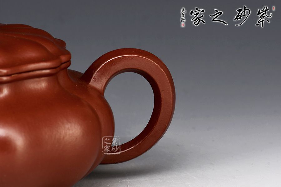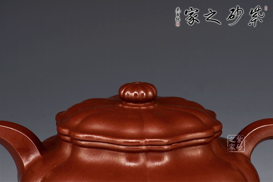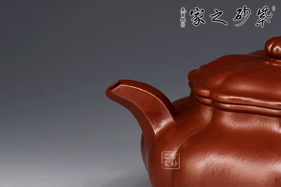 以六菱葵瓣為圖案。整壺筋紋起線,如一朵盛開的葵花,熱烈而奔放。壺鈕似嫩葉托起的花苞,