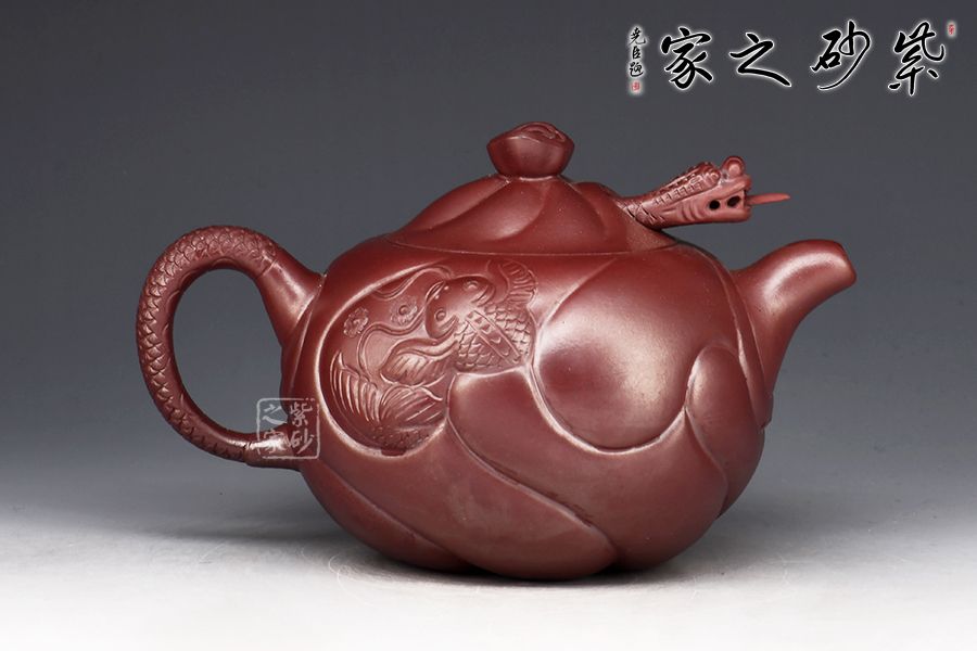 動(dòng)中有靜,靜中有動(dòng),是中國(guó)藝術(shù)的審美追求。此款壺是經(jīng)典器型魚化龍壺紋飾的創(chuàng)新。