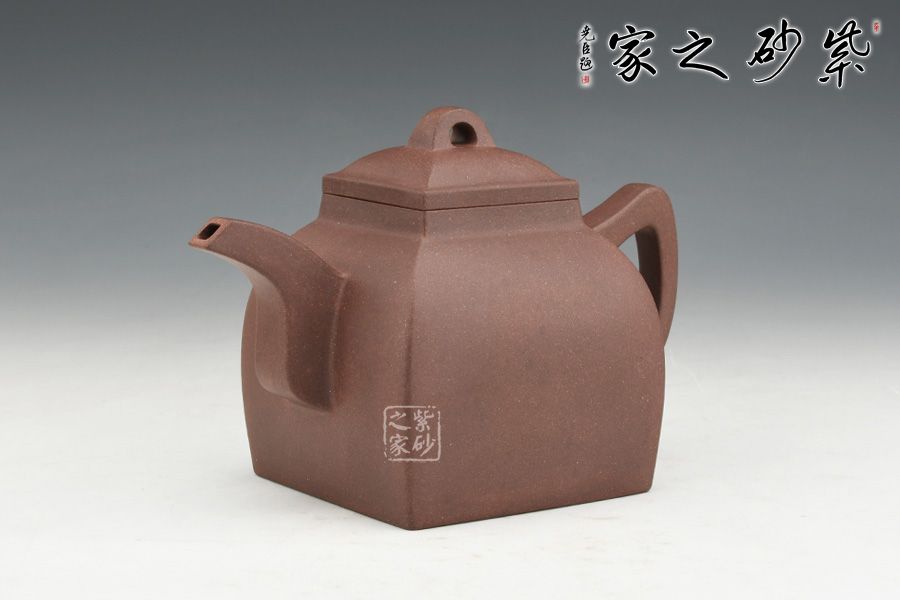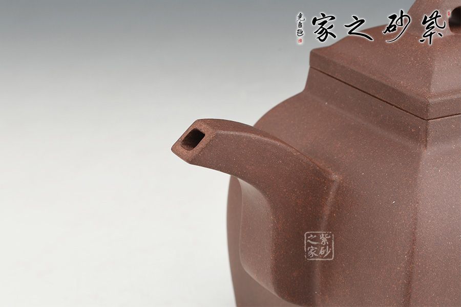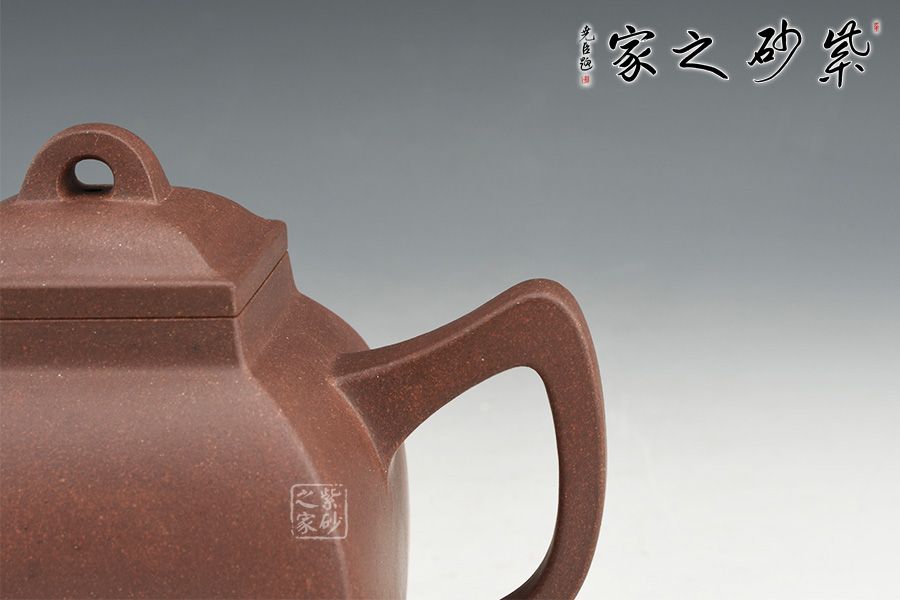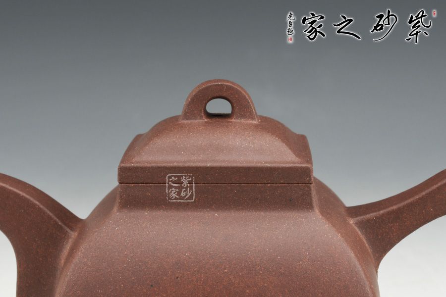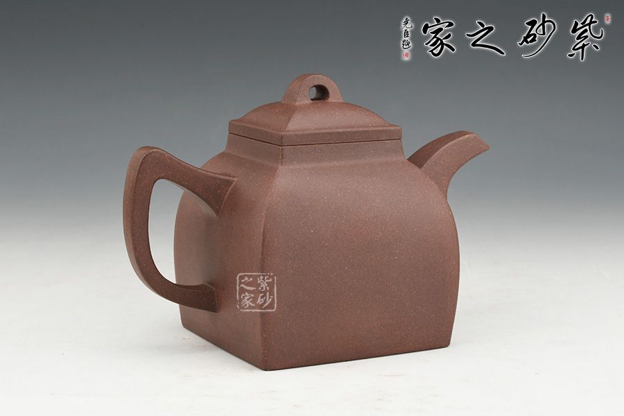 此四方壺雖為方器,但又不失圓器的柔美,所謂方非一式,圓非一體,老師將方與圓的藝術(shù)搭配得井井有條,兩者融合恰當(dāng),使得整個(gè)器型優(yōu)美雅致,方中見(jiàn)圓,圓中有方,清新優(yōu)雅,做到了線條流暢,美觀古樸特點(diǎn),這都?xì)w益于老師細(xì)膩心思和心靈手巧。低調(diào)內(nèi)斂的韻味給你帶有意思深厚,穩(wěn)重的感覺(jué)配以品茗茶香,不可遺味。
