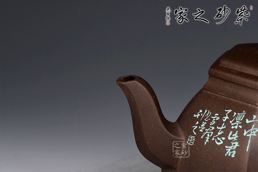 此壺便覺古樸典雅,柔和大方,不但有方器的挺秀,同時也有圓器的柔和,方中寓圓,