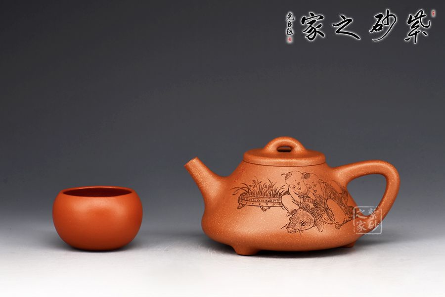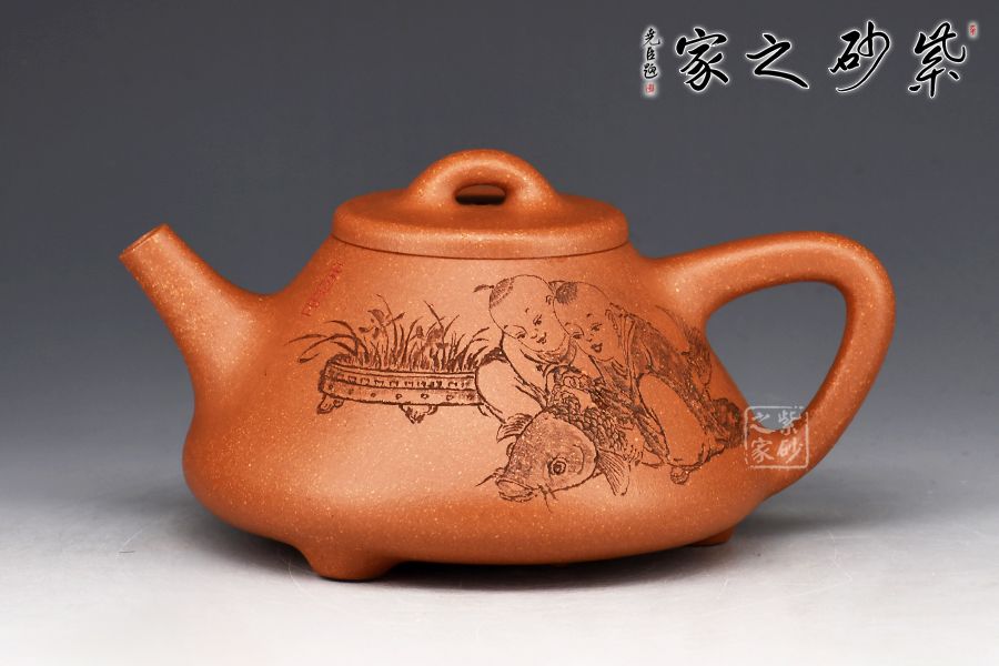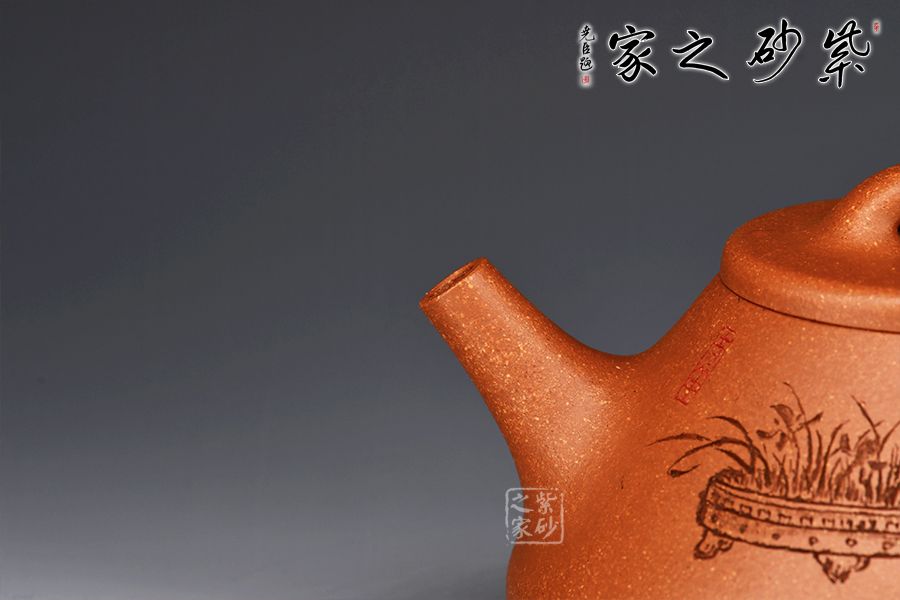 特點:原礦因含緞泥、紅泥、紫泥等諸多共生礦,陶之后,于深沉之“橙紅色”底上,滿佈五彩斑斕的粗細(xì)、深淺之紅、黃星斑點。