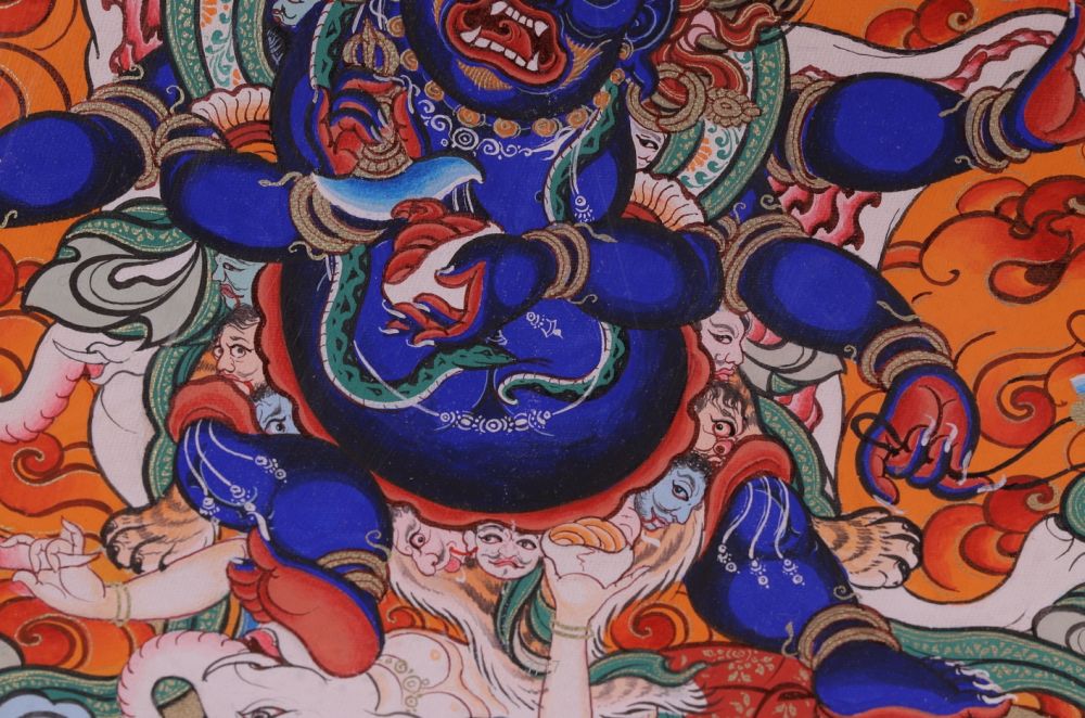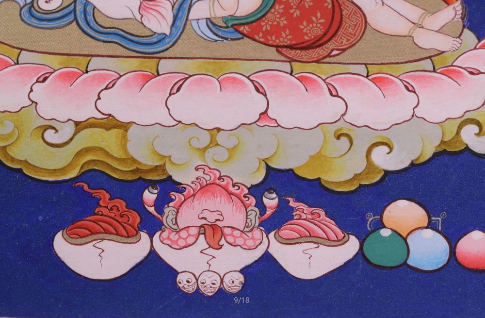 | 唐卡是歷史的瑰寶,現(xiàn)已被例入國家非物質(zhì)文化遺產(chǎn)名錄,得到了高度的重視和保護(hù)。同時由于顏料的珍稀、繪制周期長、工藝復(fù)雜大大增強了其珍藏價值。一幅好的作品可遇不可求,近年來唐卡已成為收藏界炙手可熱的藏品。 | 唐卡的形式便于攜帶,其內(nèi)容體現(xiàn)了藏傳佛教的莊重、神圣、華貴,被稱為“移動的佛像”。同時也是修行者積累善業(yè),追尋心靈的平靜與安寧的一個過程。 | 唐卡的內(nèi)容包羅萬象,它以圖像的方式承載著藏族文化精髓,是藏族智慧的結(jié)晶,廣泛傳播了藏地的文化、歷史和宗教理論。 | 唐卡絢麗的色彩、流暢的線條、嚴(yán)謹(jǐn)?shù)慕Y(jié)構(gòu),都充滿著濃郁的高原和游牧民族風(fēng)情,無疑是難得的藝術(shù)珍品。值得一提的是唐卡繪制顏料全部為天然礦物顏料,畫面效果艷麗,可以保存千年而不變色。 |