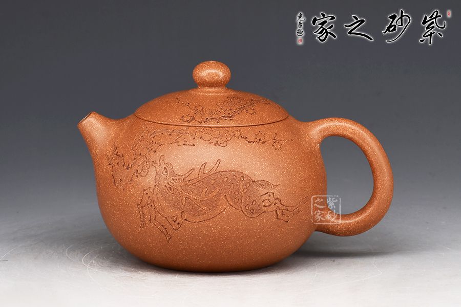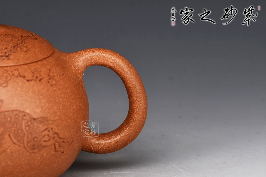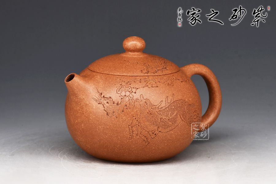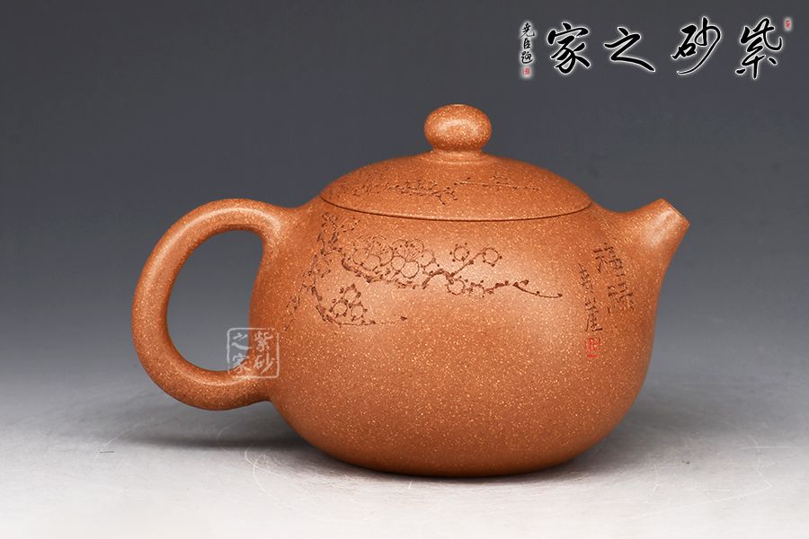 此件西施壺全手工拍打成型,器型比例協(xié)調(diào),線條簡(jiǎn)潔明朗,壺身飽滿豐潤(rùn),圓蓋上點(diǎn)一粒珠鈕,玉潤(rùn)生輝,口、蓋銜接自然流暢,恰到好處。