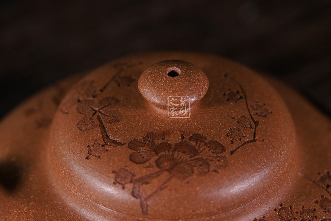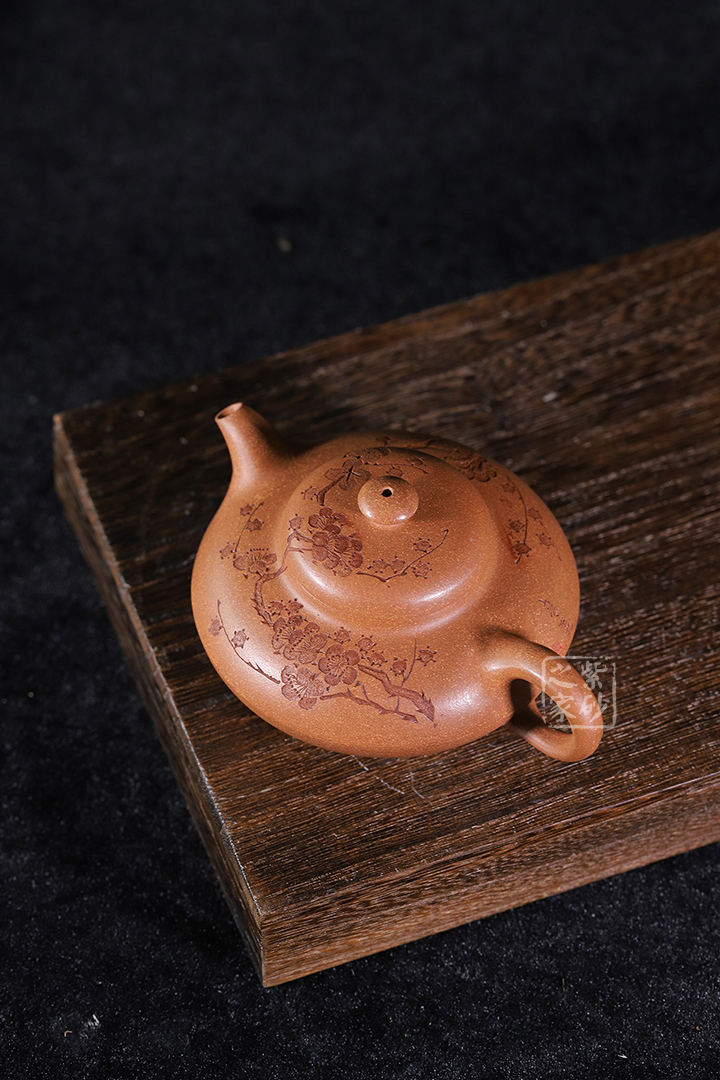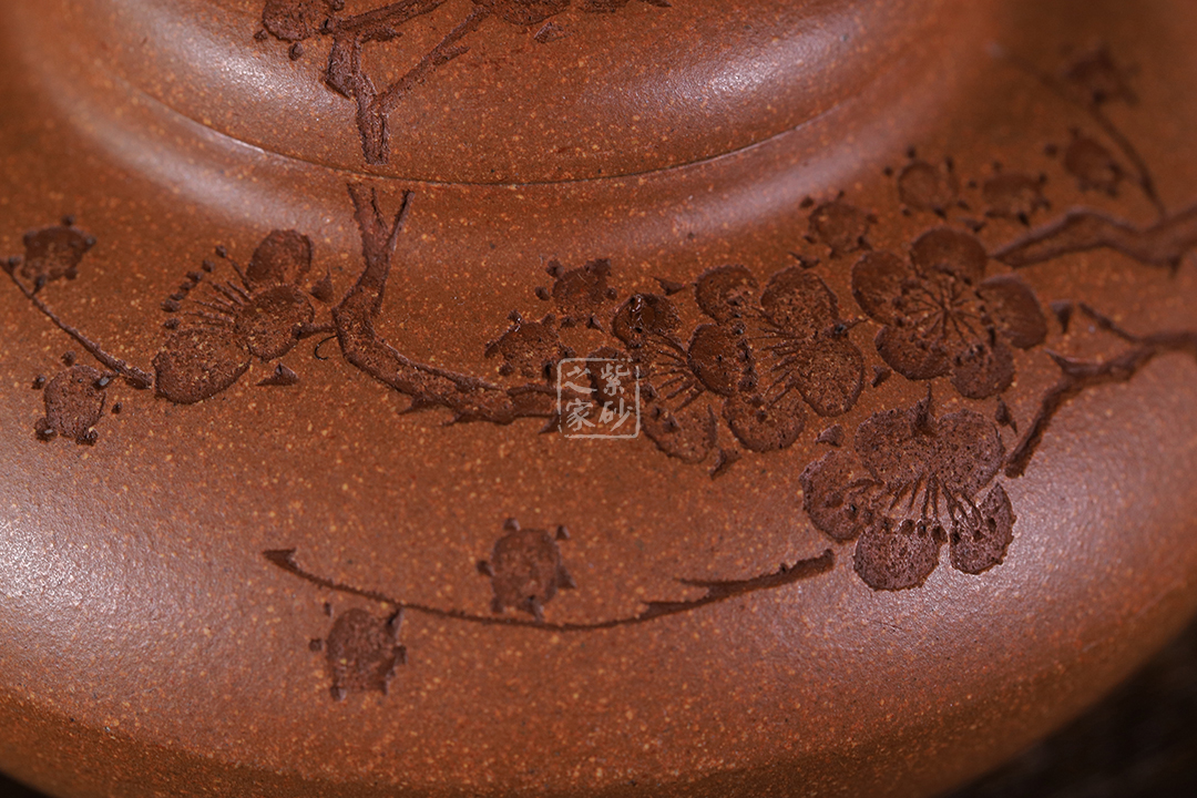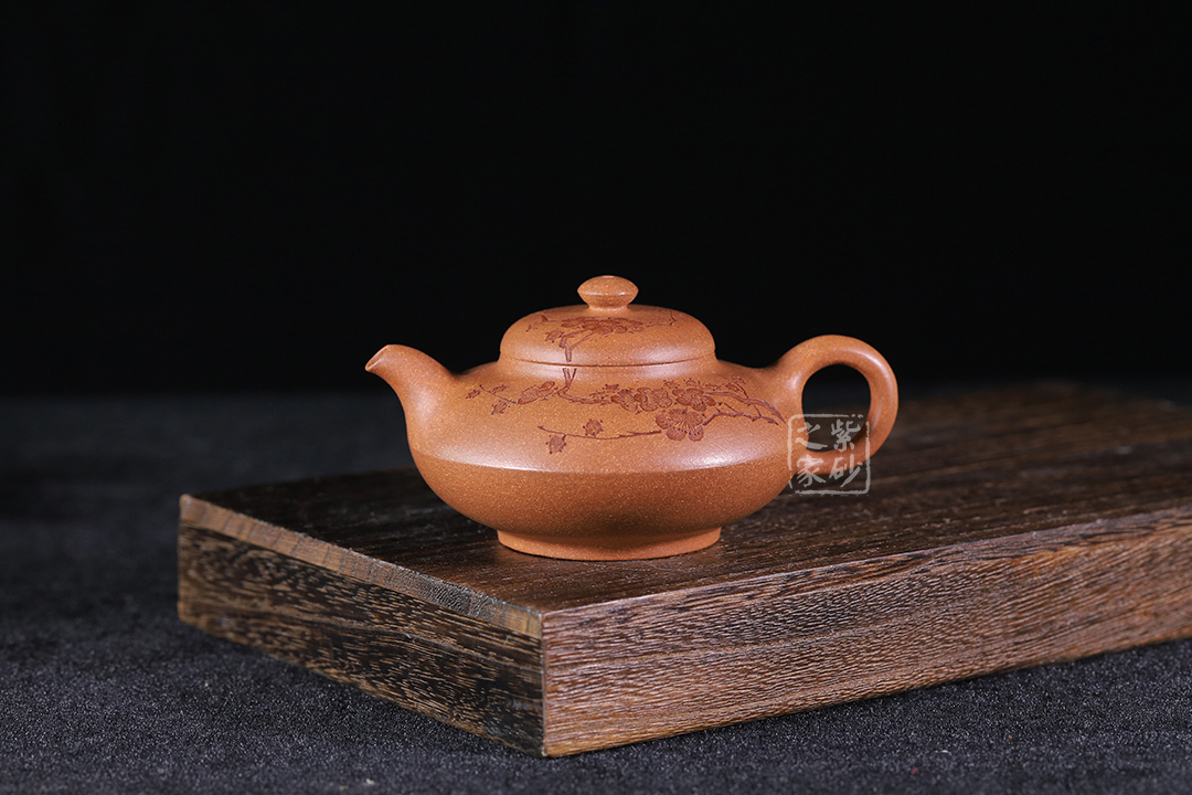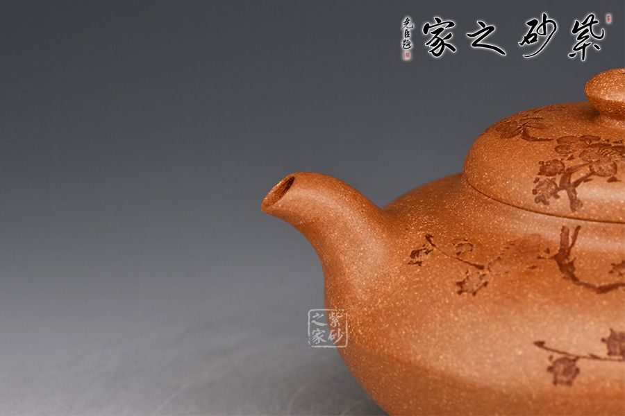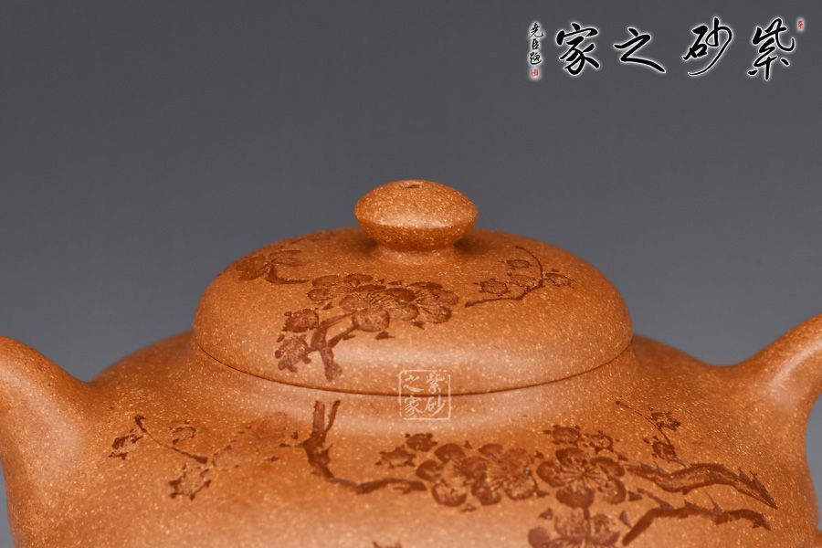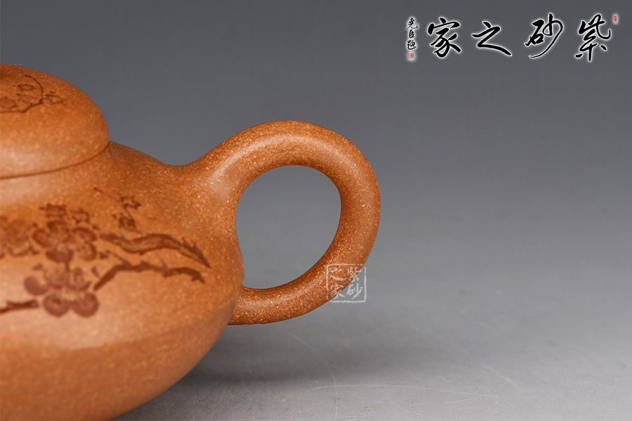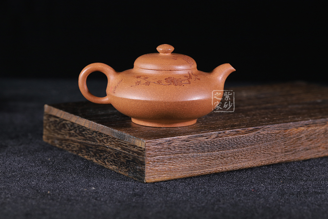 泥性:感甜嫩綿密,質(zhì)堅(jiān)而溫潤,呈近田黃色調(diào),為江蘇宜興趙莊山系朱泥礦~黃石黃之共生礦,經(jīng)挑揀練製而成,因含鐵量只達(dá)6%左右,致陶之后呈“金田黃色”。