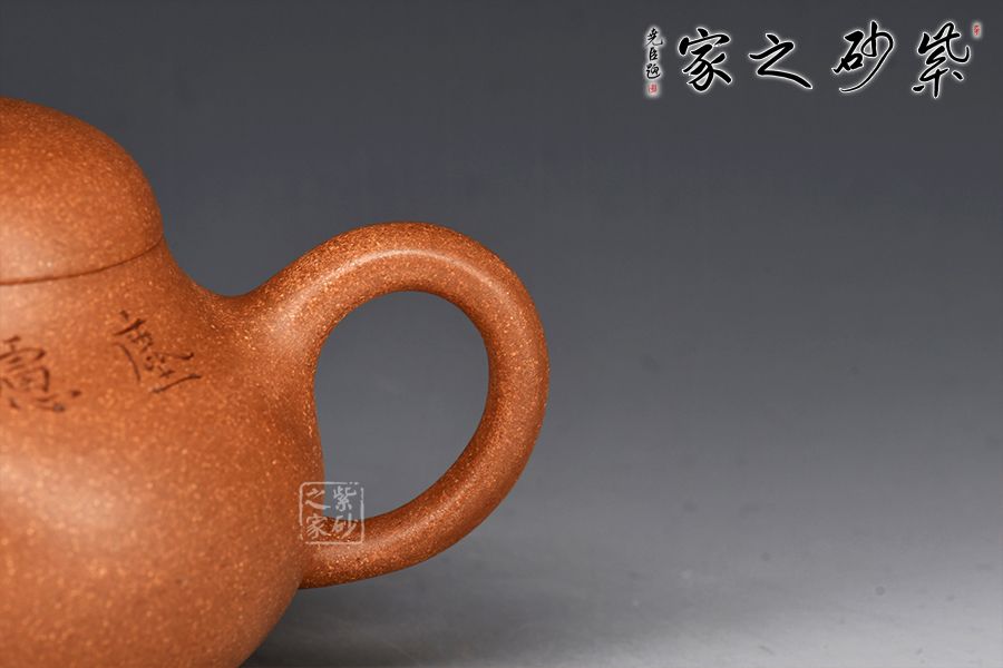 喜瓢壺,壺身豐滿圓潤(rùn),壺底小三足,短直嘴,耳形把,肩高口大,字母線截蓋設(shè)計(jì)。半圓蓋,頂部小圓鈕。適飲之容,巧握巧持;品賞善用,勝是歡心。整器觀之悅目,用之賞心,值得推薦!