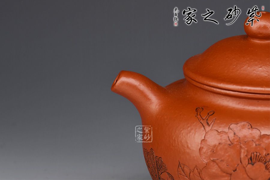 此壺精選原礦紅泥為胎,老師全手工制作,泥色紅潤,宜泡養(yǎng)。壺身圓潤飽滿,線條流暢。壺肩處微微收攏,平蓋橋鈕,大口蓋好投茶。二彎嘴出水爽利,耳把粗細(xì)有致。