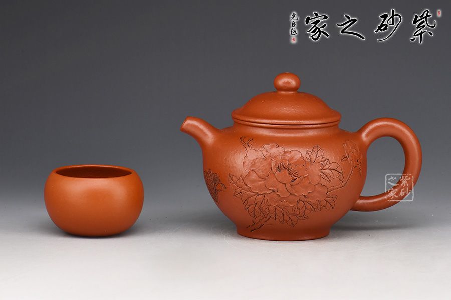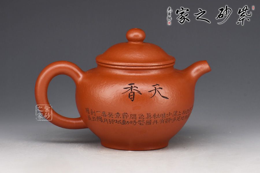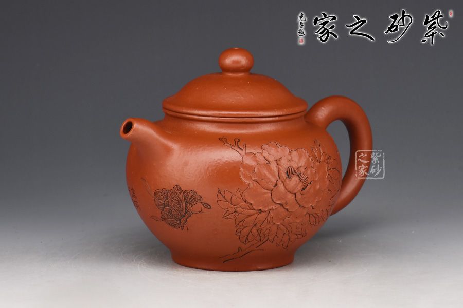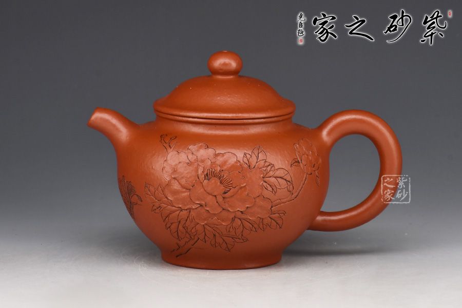 老師紫砂深浮雕陶刻一絕,正面刻繪盛世牡丹花,栩栩如生,反面刻繪“天香”二字,前后呼應(yīng),佳器一把。