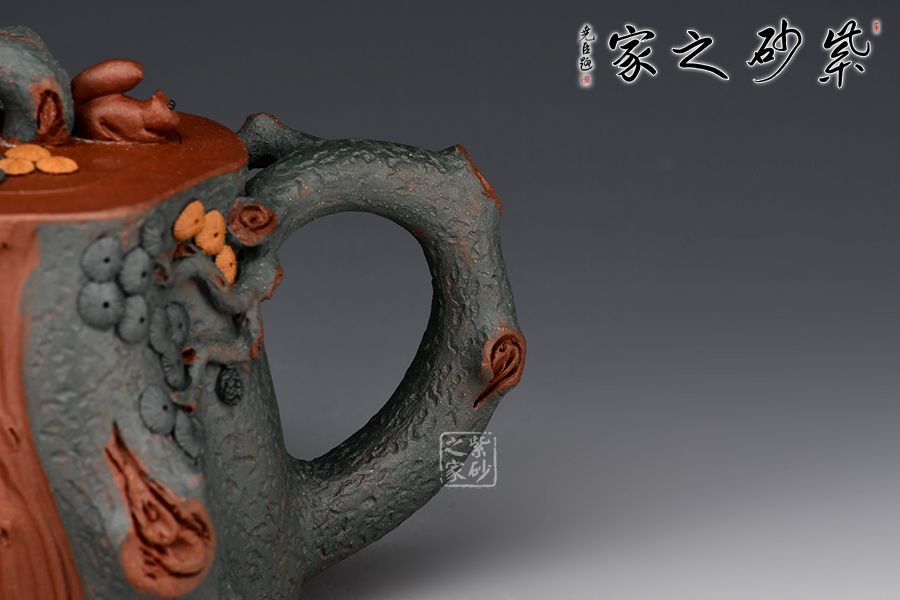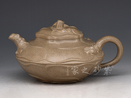 蔣藝華自幼受養(yǎng)母蔣蓉大師的嚴(yán)格教育和培養(yǎng),她在母親身邊勤奮樸實(shí)地學(xué)習(xí),一步一個(gè)腳印地打下傳統(tǒng)工藝的基本功,經(jīng)過(guò)幾十年的刻苦磨練和鉆研實(shí)踐,蔣藝華對(duì)花貨類的制作已有相當(dāng)?shù)念I(lǐng)悟,在不斷的學(xué)習(xí)中,更加拓寬了她的創(chuàng)作思路。她創(chuàng)作的作品「荷葉提梁壺」,藏家非常喜愛。她將葉脈紋理細(xì)心地刻劃出來(lái),以卷葉為嘴使出水順暢,以有小刺的葉梗為壺把,把自然界的事物加以構(gòu)思取舍后,就成為一把既實(shí)用又美觀的茶壺。
