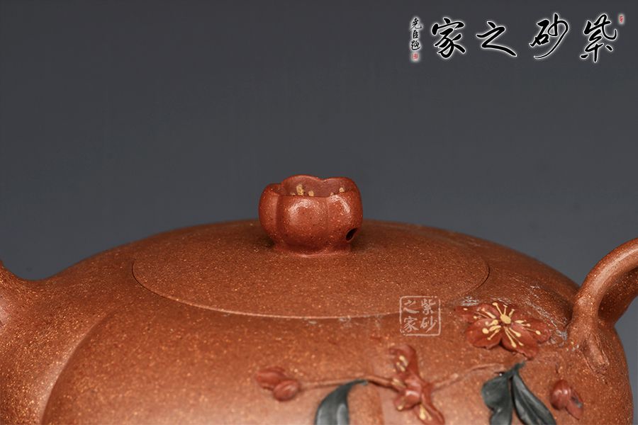 泥性:原礦因含緞泥、紅泥、紫泥等諸多共生礦,陶之后,于深沉之“橙紅色”底上,滿佈五彩斑斕的粗細(xì)、深淺之紅、黃星斑點(diǎn)。