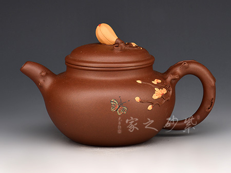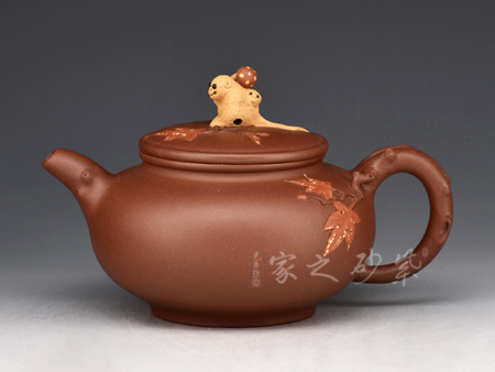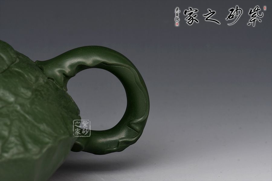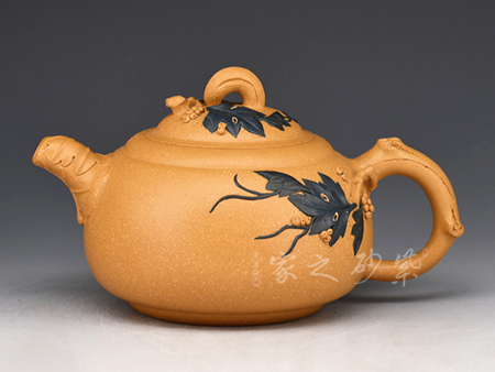 蔣藝華自幼受養(yǎng)母蔣蓉大師的嚴(yán)格教育和培養(yǎng),她在母親身邊勤奮樸實(shí)地學(xué)習(xí),一步一個(gè)腳印地打下傳統(tǒng)工藝的基本功,經(jīng)過幾十年的刻苦磨練和鉆研實(shí)踐,蔣藝華對(duì)花貨類的制作已有相當(dāng)?shù)念I(lǐng)悟,在不斷的學(xué)習(xí)中,更加拓寬了她的創(chuàng)作思路。她創(chuàng)作的作品「荷葉提梁壺」,藏家非常喜愛。她將葉脈紋理細(xì)心地刻劃出來,以卷葉為嘴使出水順暢,以有小刺的葉梗為壺把,把自然界的事物加以構(gòu)思取舍后,就成為一把既實(shí)用又美觀的茶壺。