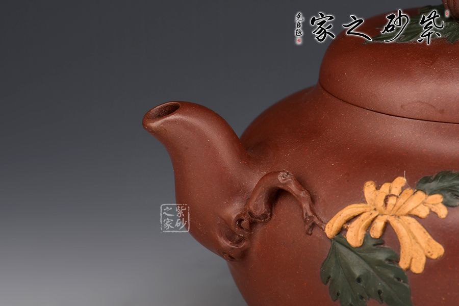 蔣藝華自幼受養(yǎng)母蔣蓉大師的嚴格教育和培養(yǎng),她在母親身邊勤奮樸實地學習,一步一個腳印地打下傳統(tǒng)工藝的基本功,經(jīng)過幾十年的刻苦磨練和鉆研實踐,蔣藝華對花貨類的制作已有相當?shù)念I(lǐng)悟,在不斷的學習中,更加拓寬了她的創(chuàng)作思路。她創(chuàng)作的作品「荷葉提梁壺」,藏家非常喜愛。她將葉脈紋理細心地刻劃出來,以卷葉為嘴使出水順暢,以有小刺的葉梗為壺把,把自然界的事物加以構(gòu)思取舍后,就成為一把既實用又美觀的茶壺。