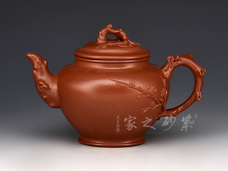 蔣藝華自幼受養(yǎng)母蔣蓉大師的嚴(yán)格教育和培養(yǎng),她在母親身邊勤奮樸實(shí)地學(xué)習(xí),一步一個(gè)腳印地打下傳統(tǒng)工藝的基本功,經(jīng)過(guò)幾十年的刻苦磨練和鉆研實(shí)踐,蔣藝華對(duì)花貨類(lèi)的制作已有相當(dāng)?shù)念I(lǐng)悟,在不斷的學(xué)習(xí)中,更加拓寬了她的創(chuàng)作思路。她創(chuàng)作的作品「荷葉提梁壺」,藏家非常喜愛(ài)。她將葉脈紋理細(xì)心地刻劃出來(lái),以卷葉為嘴使出水順暢,以有小刺的葉梗為壺把,把自然界的事物加以構(gòu)思取舍后,就成為一把既實(shí)用又美觀的茶壺。