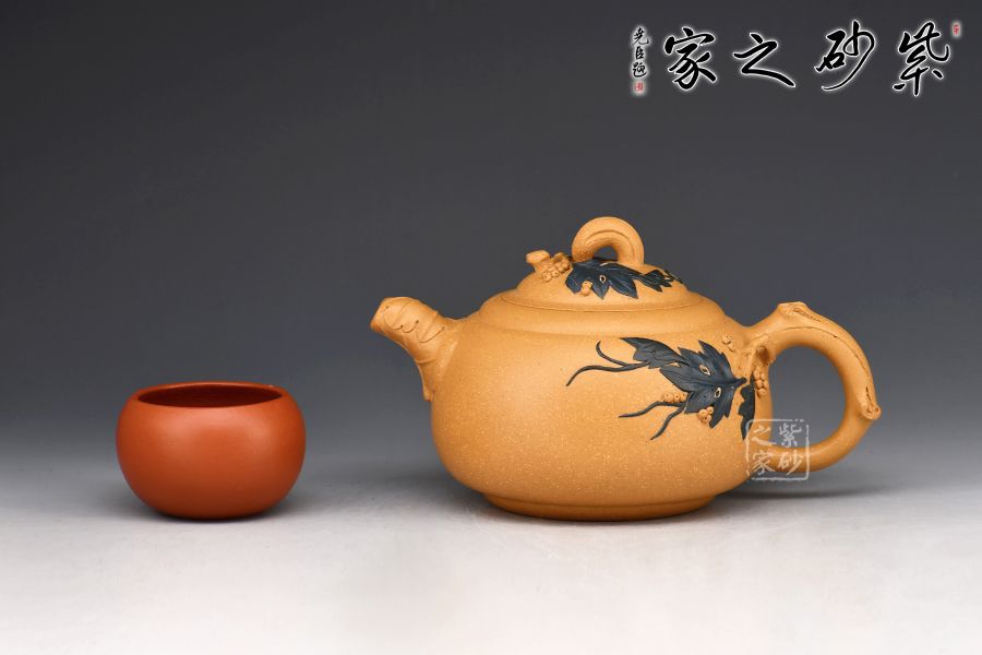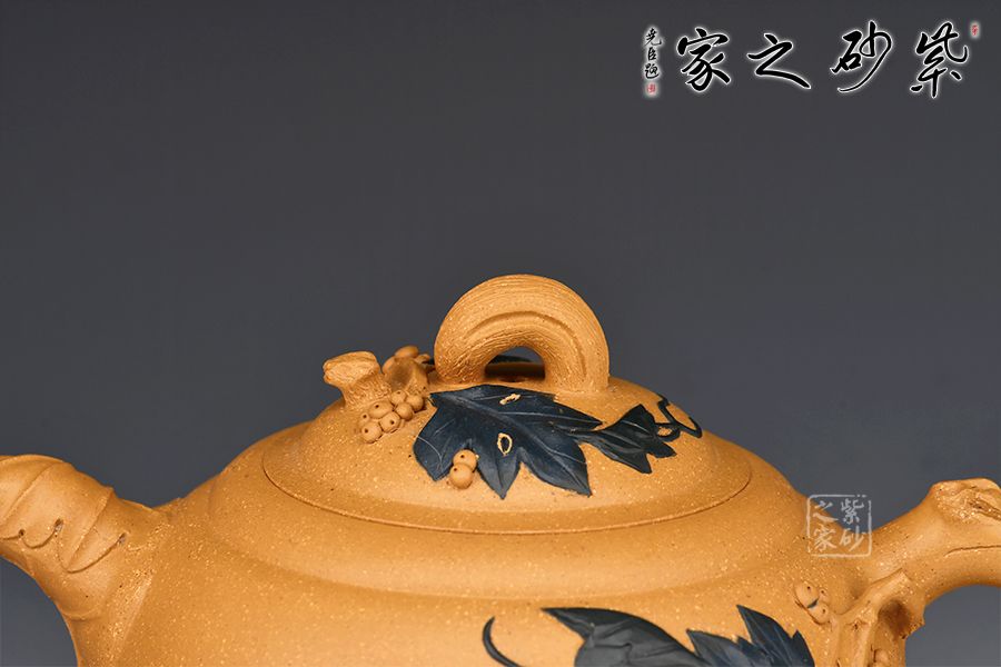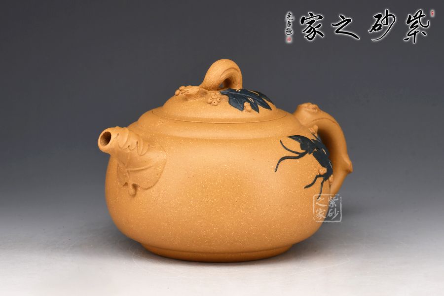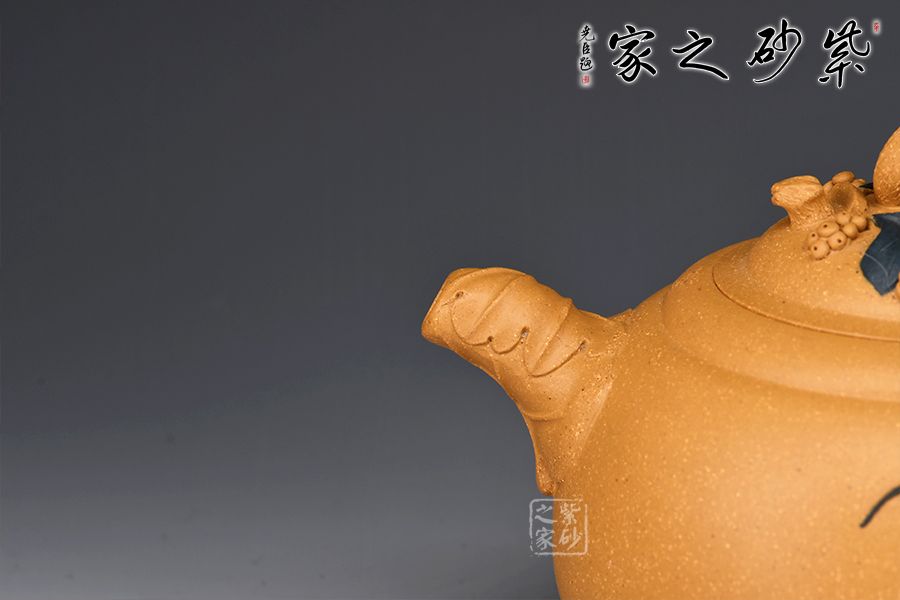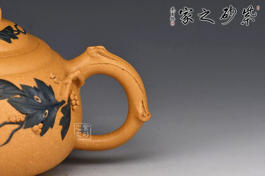 蔣藝華自幼受養(yǎng)母蔣蓉大師的嚴(yán)格教育和培養(yǎng),她在母親身邊勤奮樸實地學(xué)習(xí),一步一個腳印地打下傳統(tǒng)工藝的基本功,經(jīng)過幾十年的刻苦磨練和鉆研實踐,蔣藝華對花貨類的制作已有相當(dāng)?shù)念I(lǐng)悟,在不斷的學(xué)習(xí)中,更加拓寬了她的創(chuàng)作思路。她創(chuàng)作的作品「荷葉提梁壺」,藏家非常喜愛。她將葉脈紋理細(xì)心地刻劃出來,以卷葉為嘴使出水順暢,以有小刺的葉梗為壺把,把自然界的事物加以構(gòu)思取舍后,就成為一把既實用又美觀的茶壺。