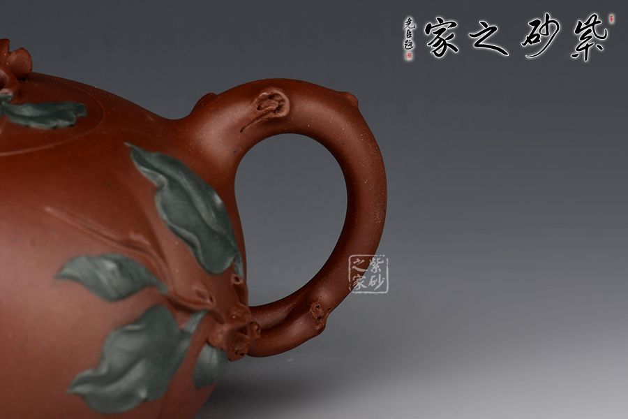 蔣藝華自幼受養(yǎng)母蔣蓉大師的嚴(yán)格教育和培養(yǎng),她在母親身邊勤奮樸實地學(xué)習(xí),一步一個腳印地打下傳統(tǒng)工藝的基本功,經(jīng)過幾十年的刻苦磨練和鉆研實踐,蔣藝華對花貨類的制作已有相當(dāng)?shù)念I(lǐng)悟,在不斷的學(xué)習(xí)中,更加拓寬了她的創(chuàng)作思路。她創(chuàng)作的作品「荷葉提梁壺」,藏家非常喜愛。她將葉脈紋理細心地刻劃出來,以卷葉為嘴使出水順暢,以有小刺的葉梗為壺把,把自然界的事物加以構(gòu)思取舍后,就成為一把既實用又美觀的茶壺。