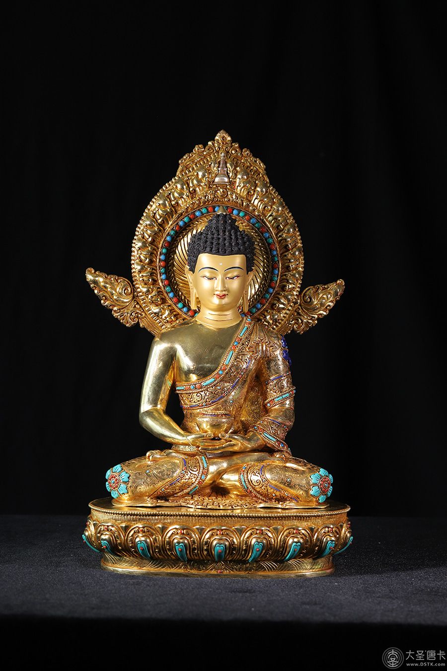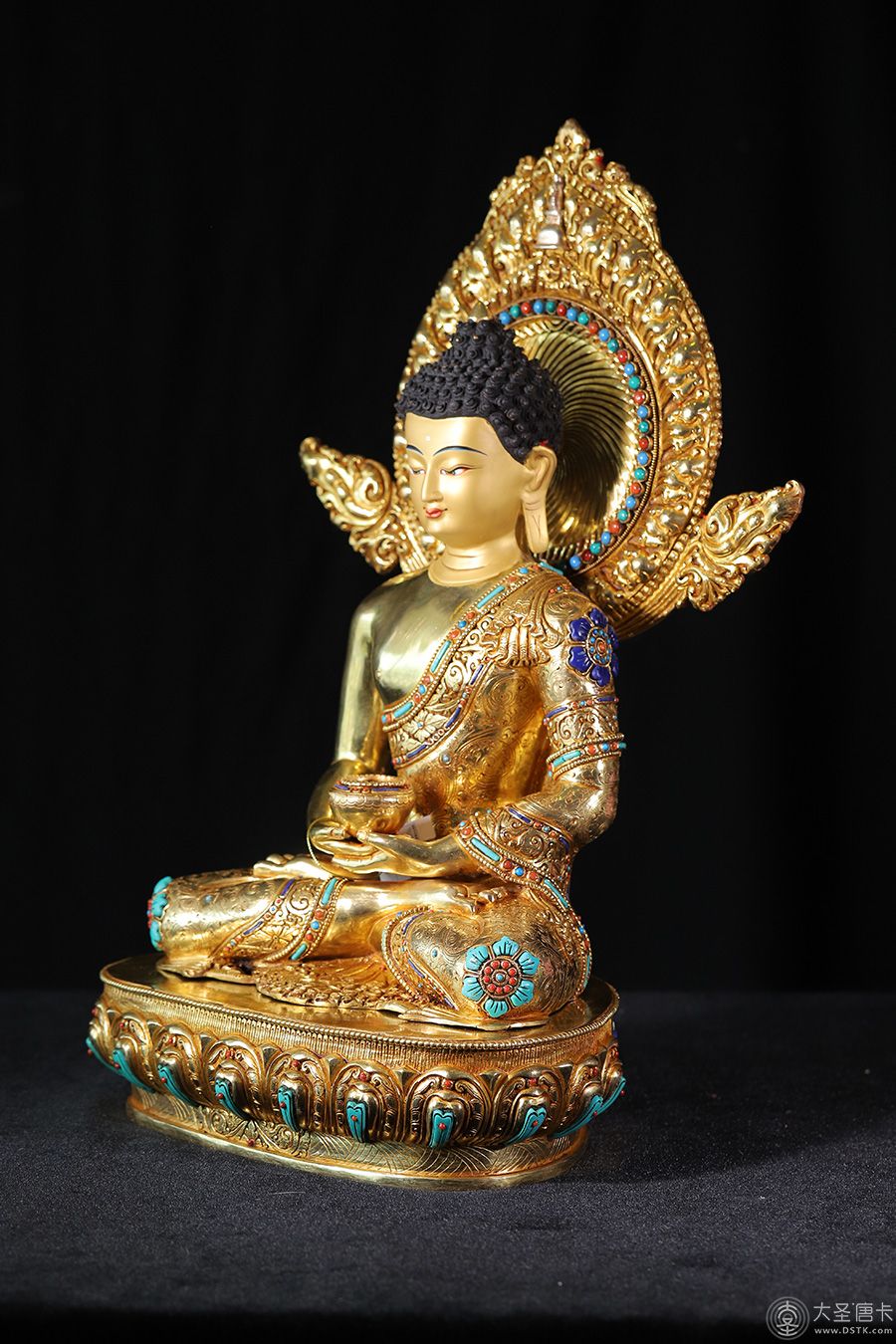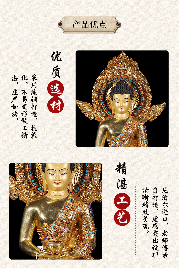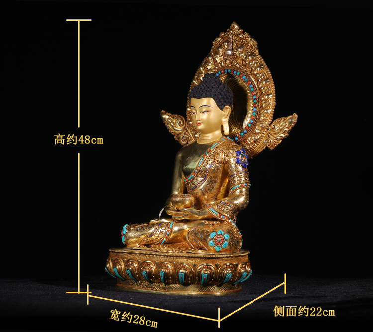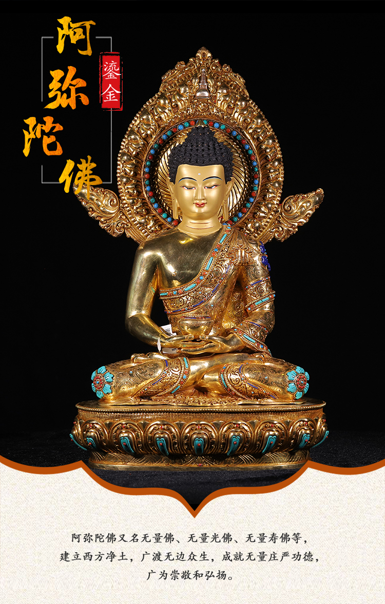 尼泊爾紫銅鎏金阿彌陀佛家用擺設(shè)48cm