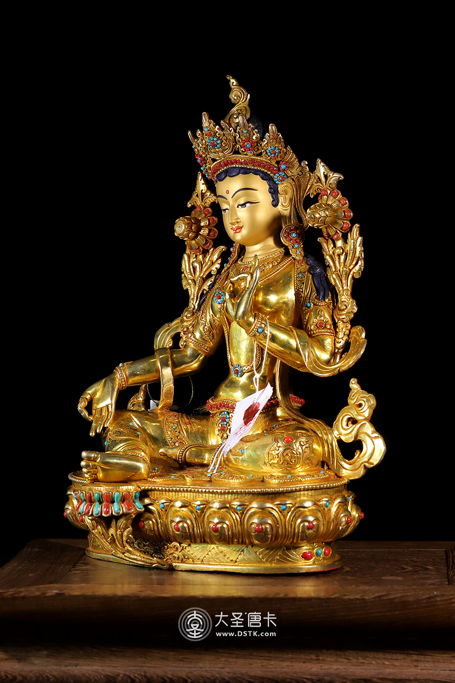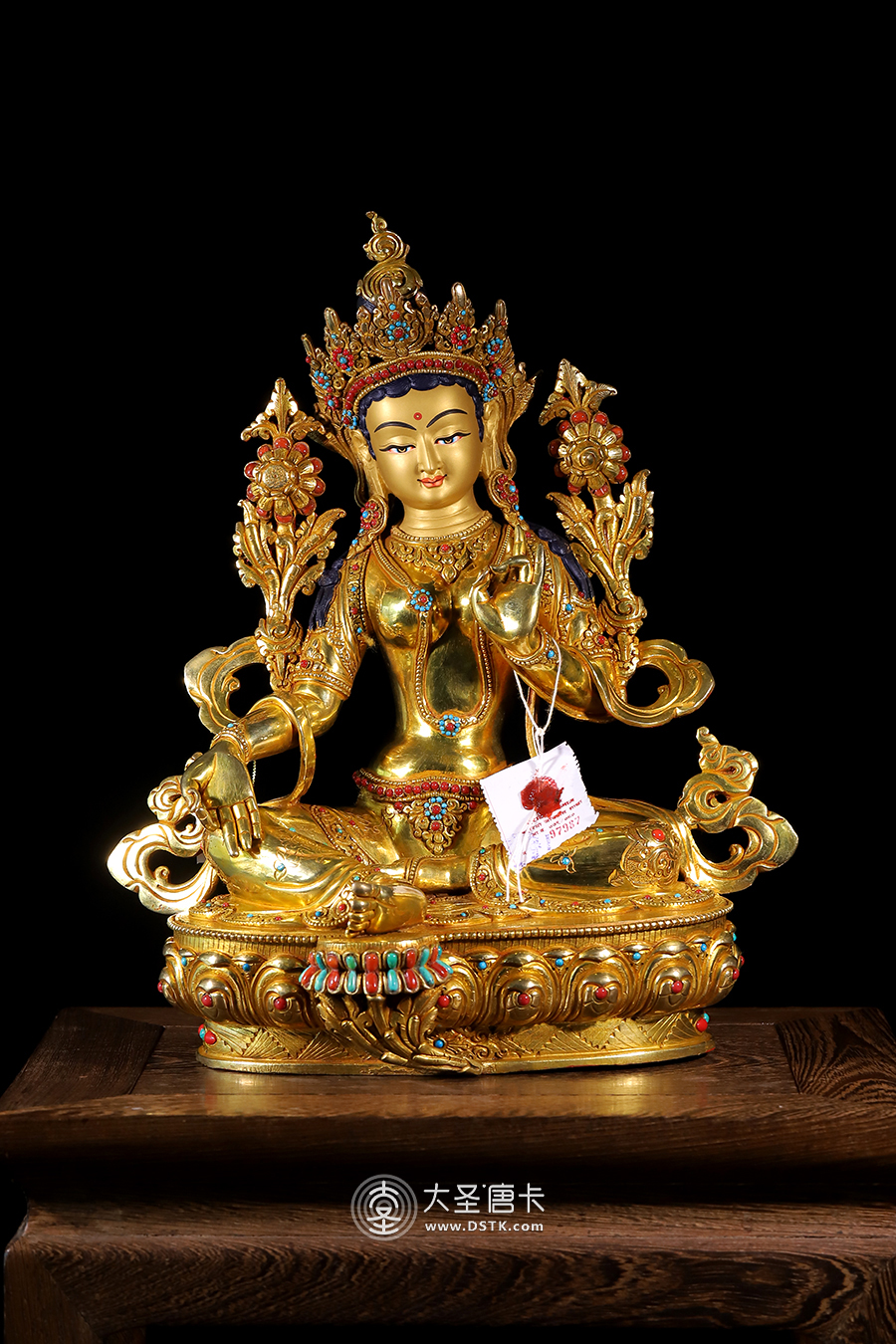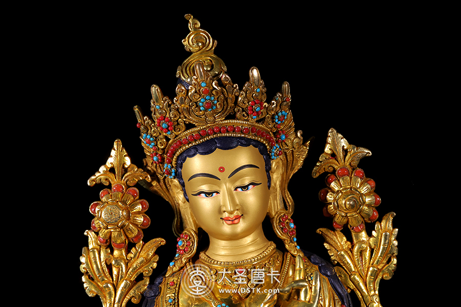 綠度母,藏語叫“卓姜”,是從觀音菩薩的眼淚中化現出來的,所以最慈悲。綠度母為所有度母之主尊,總攝其余二十尊化身之所有功德。因其救度之迅速、摧滅魔業之勇猛,故又稱作“救度速勇母”。
