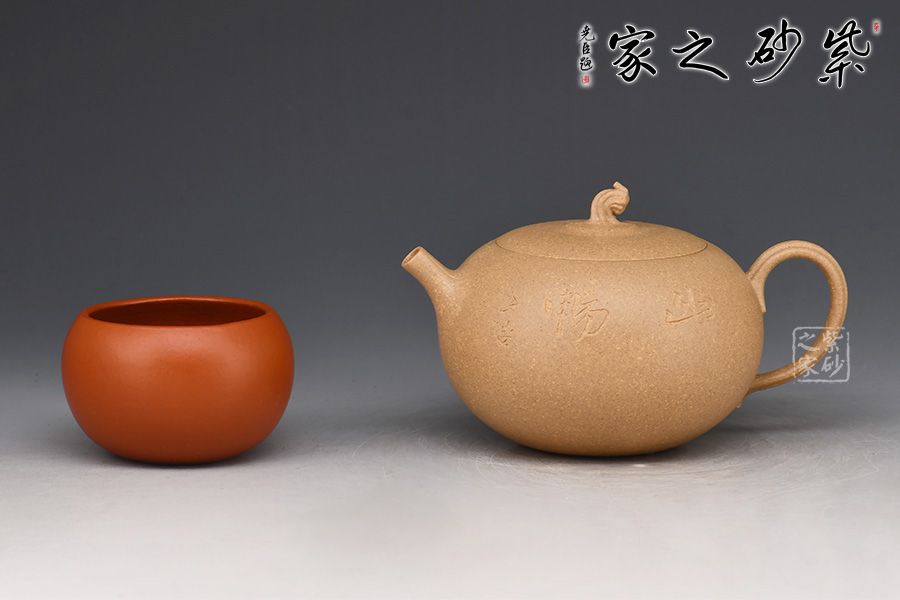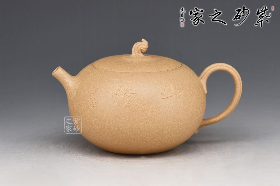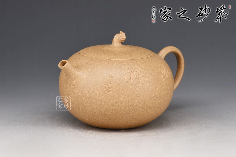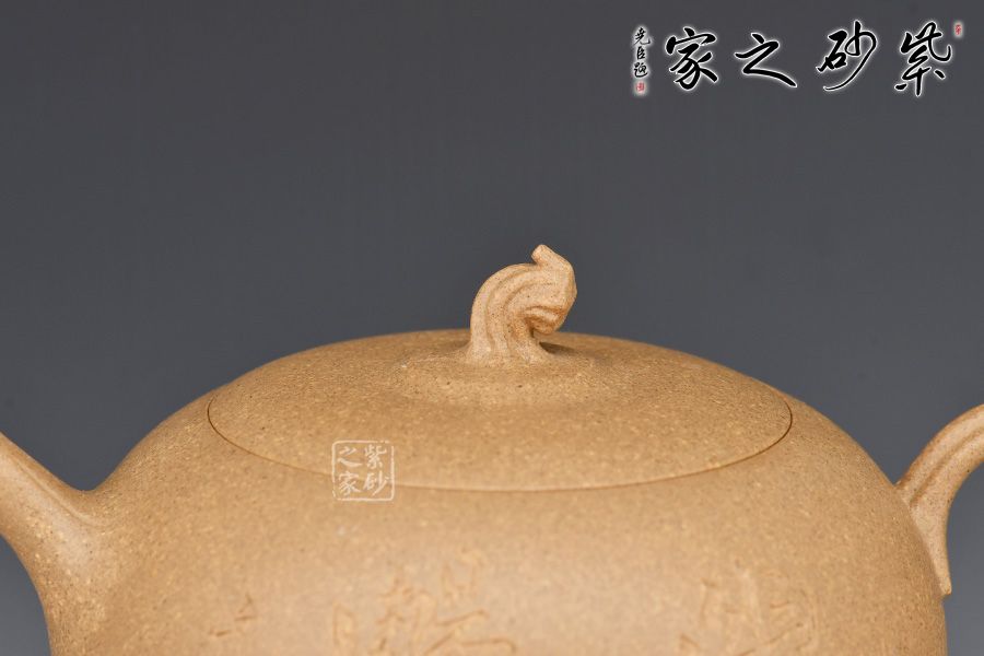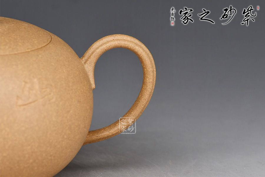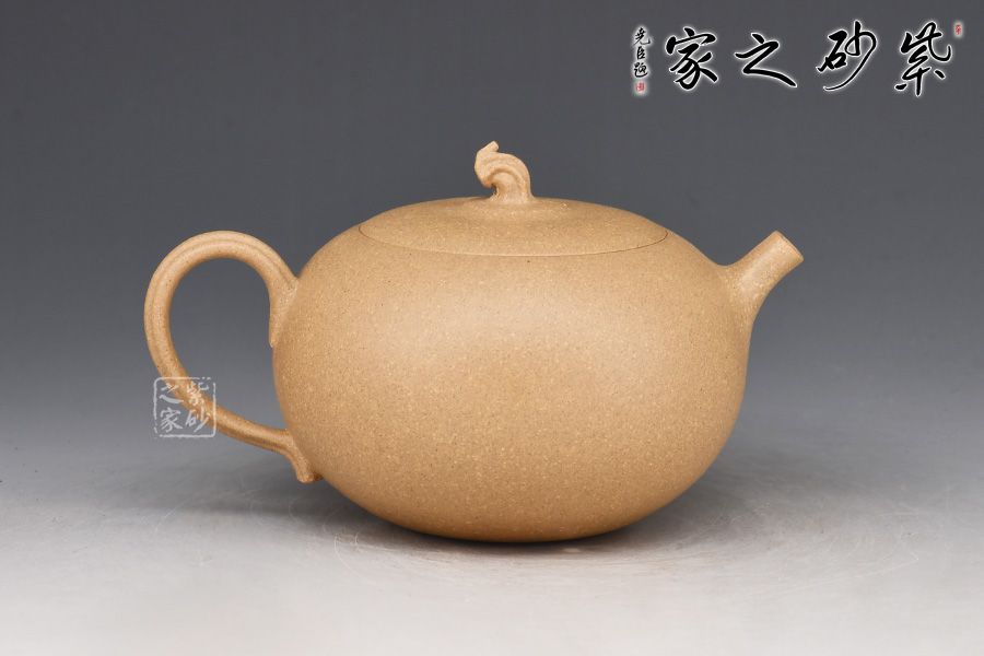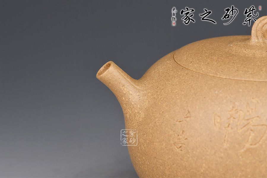 此壺為作者選用老段泥精制而成,質樸溫潤的色澤之上,粒粒金砂閃爍,盡顯古雅樸拙之味。