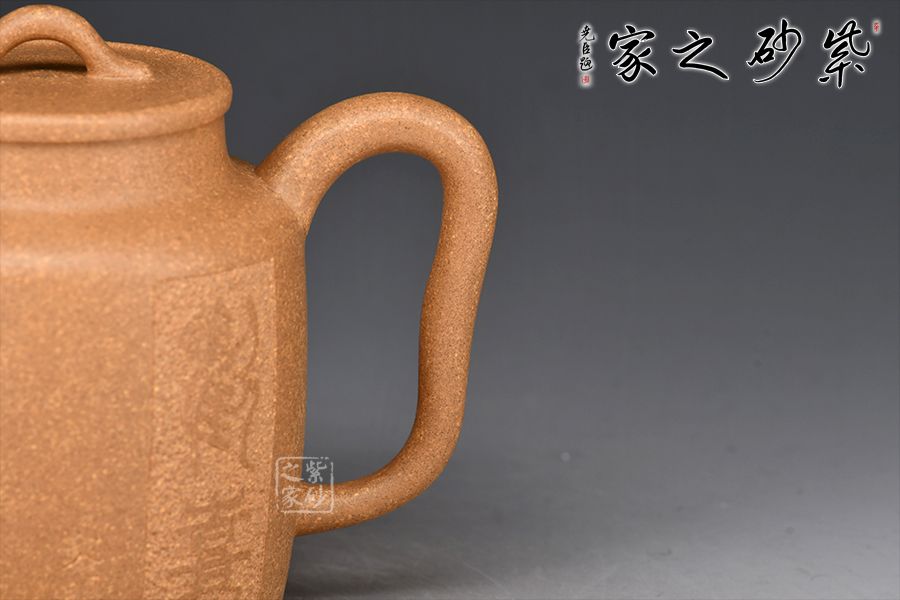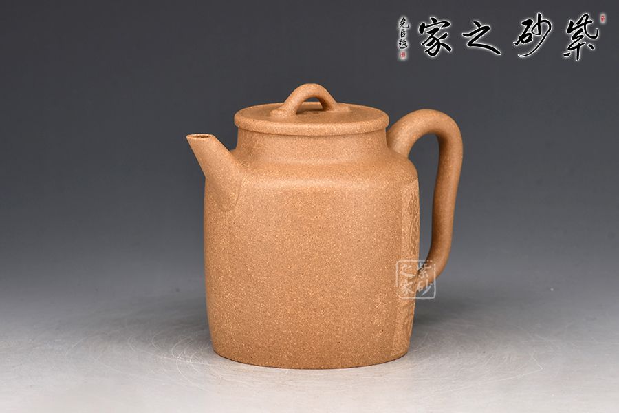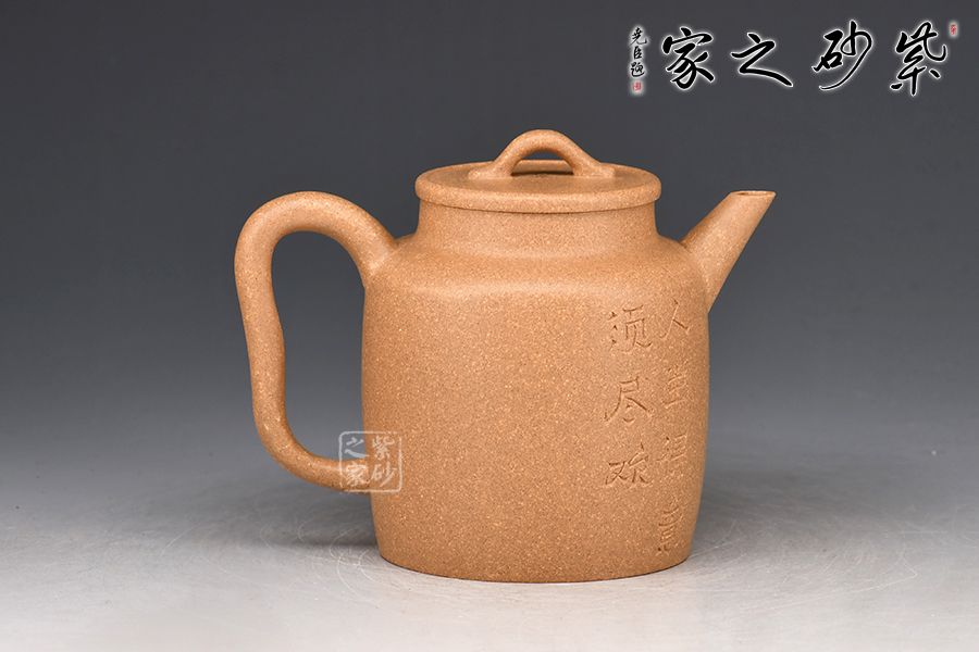 橋形壺鈕如一條蛇蜿蜒滾動,頗為生動;卷沿壺蓋線條細(xì)膩流利矮頸削肩,如一端莊女子之溫雅大耳形壺柄曲盡線條之美遙望之處,直流壺嘴逆勢而出,后勁十足直筒形壺身。段泥制作高雅之器,得此茶韻,意味無窮……