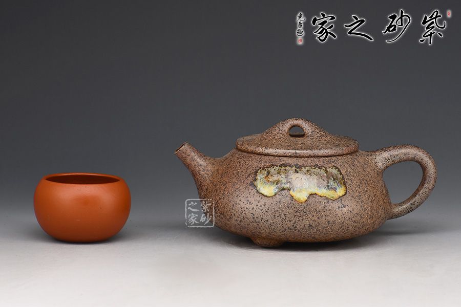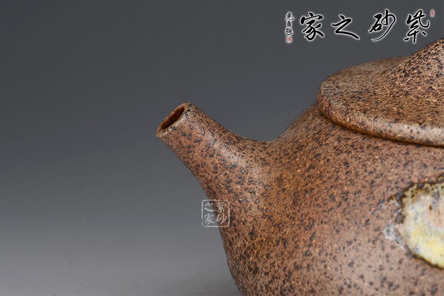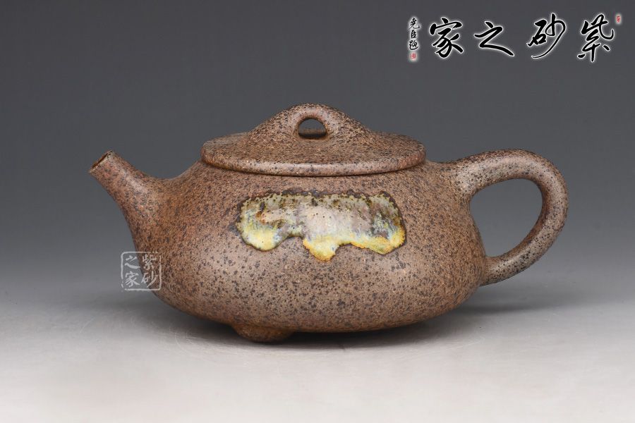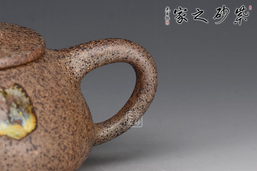 張榮法“青瓷紫砂第一人 ”,獨創(chuàng)青瓷紫砂工藝,故得此稱號。此壺1300°高溫窯變柴燒而成,壺身呈八字造型,豐潤飽滿,曲線柔和流暢,平壓蓋、橋鈕,拿取自如,直流簡而有力,出水順暢,壺把上豐下斂,與壺身之型形成和諧的美學效果,底部三乳足給人以輕靈而穩(wěn)重之感。整器比例精湛,骨肉亭勻,氣韻充沛,是一把非常實用的品茶利器。