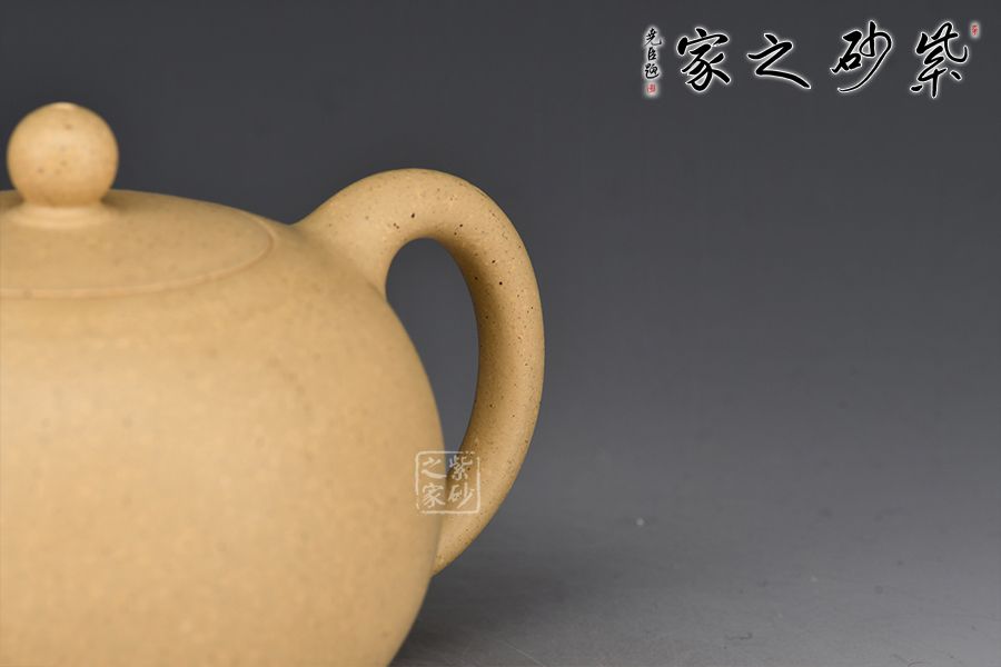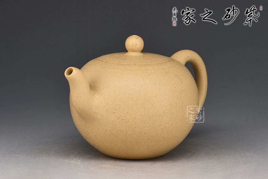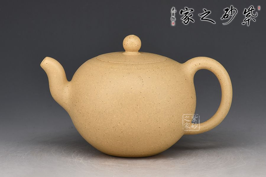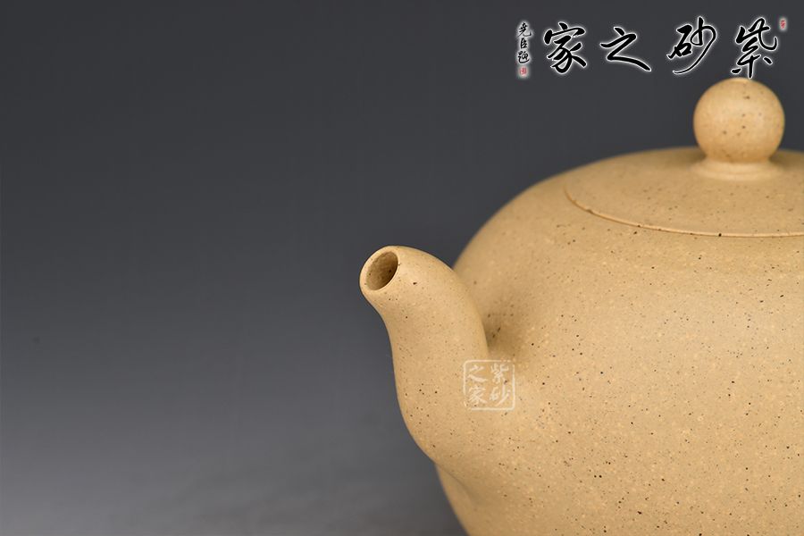 此件圓珠壺,周身光素,身筒飽滿似一粒圓珠,肌理潤澤,壺韻充盈。壺之流、把、鈕,比例協(xié)調(diào),與壺身銜接自然,渾若一體,其線條之流暢利落,有如一氣呵成,令人贊嘆。