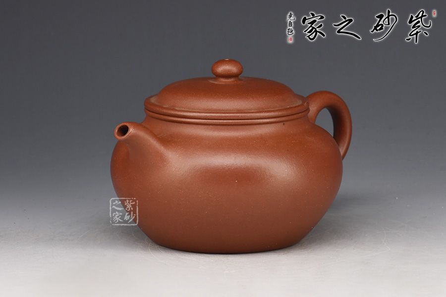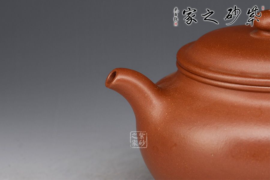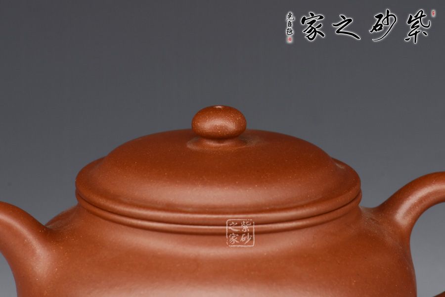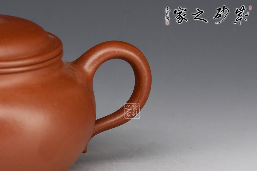 此壺作蓮子式,身筒潤(rùn)如寶珠,壺鈕亦作同式,壺型精巧。整器撫之溫存,持之挺拔,當(dāng)?shù)蒙峡∶蓝帧丶缤?,一彎壺嘴,前斂后侈,秀氣拔出,環(huán)把稍昂有力口蓋留唇,蓋面穹起,壺鈕收拾全局畫龍點(diǎn)睛,雖小卻有頂、肩、腹,足,形完而氣足。