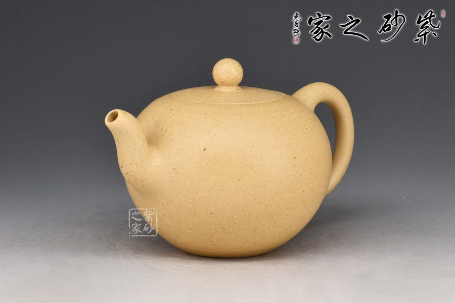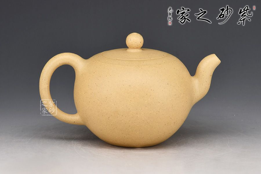 此件一粒珠壺,身形飽滿若珠,肌理豐盈潤澤,得一粒珠壺之真趣也。壺身線條簡潔,收放自如,明快利落。