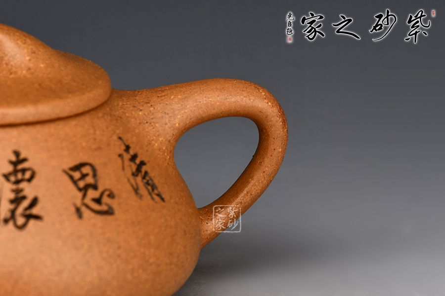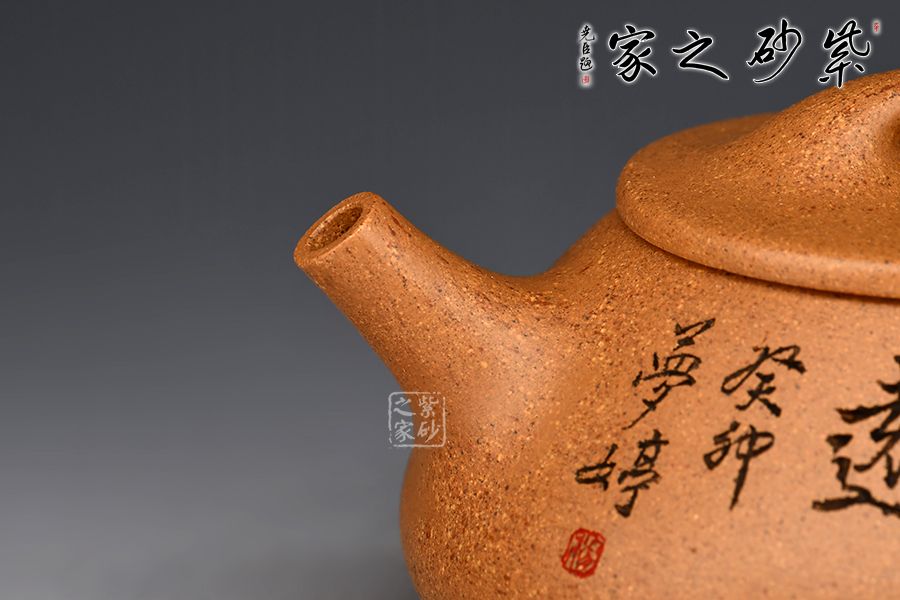 泥性:感甜嫩綿密,質(zhì)堅(jiān)而溫潤(rùn),呈近田黃色調(diào),為江蘇宜興趙莊山系朱泥礦~黃石黃之共生礦,經(jīng)挑揀練製而成,因含鐵量只達(dá)6%左右,致陶之后呈“金田黃色”。