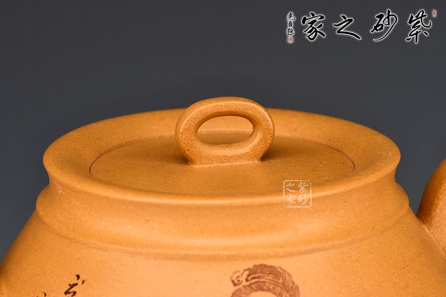 整壺線條流暢,圓身筒,造型優(yōu)美,嵌蓋圓環(huán)鈕,流把左右舒展平衡,韻味很妙。