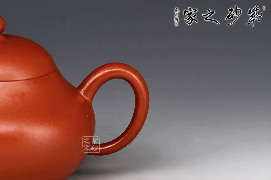 梨形壺取材于梨,整體形態(tài)若梨,妙曼身姿,猶如佳人,亭亭玉立,隨風(fēng)而舞,生動(dòng)迷人之態(tài)盡顯。精選大紅袍制成,柔嫩細(xì)膩的同時(shí),鮮艷亮麗,手感極佳。此壺全是由弧線,圓線,曲線組成,造型端莊秀美,特別壺嘴和壺體相連的兩條弧線,流暢生動(dòng),把上的把手部位,溫潤舒適,這樣的壺捧在手掌,處處讓你可以感受紫砂的溫馨可人。