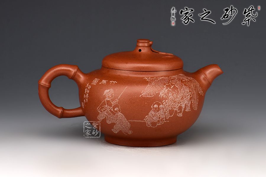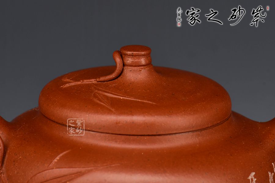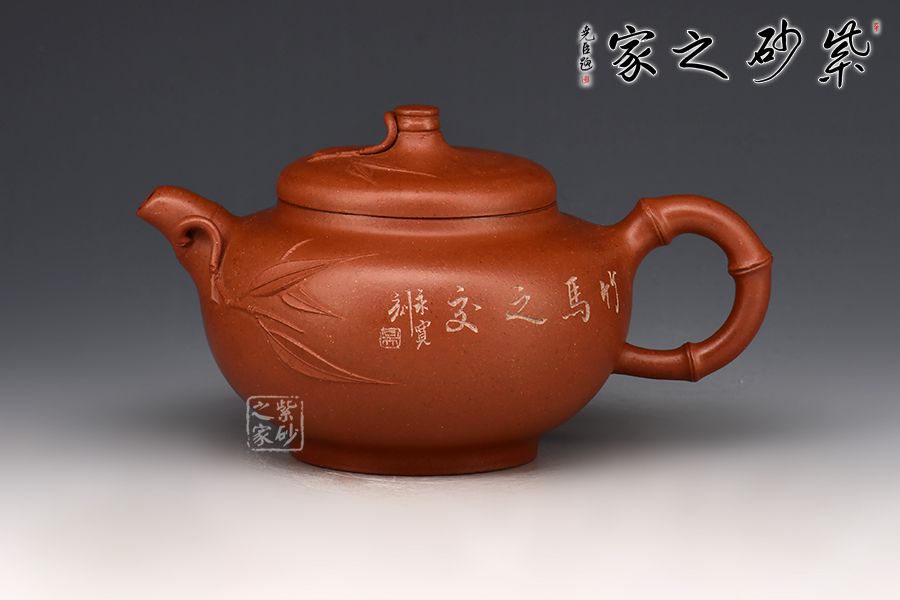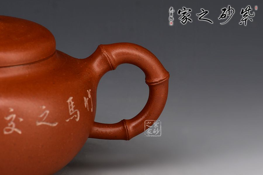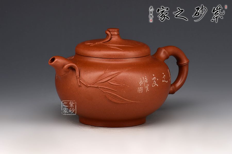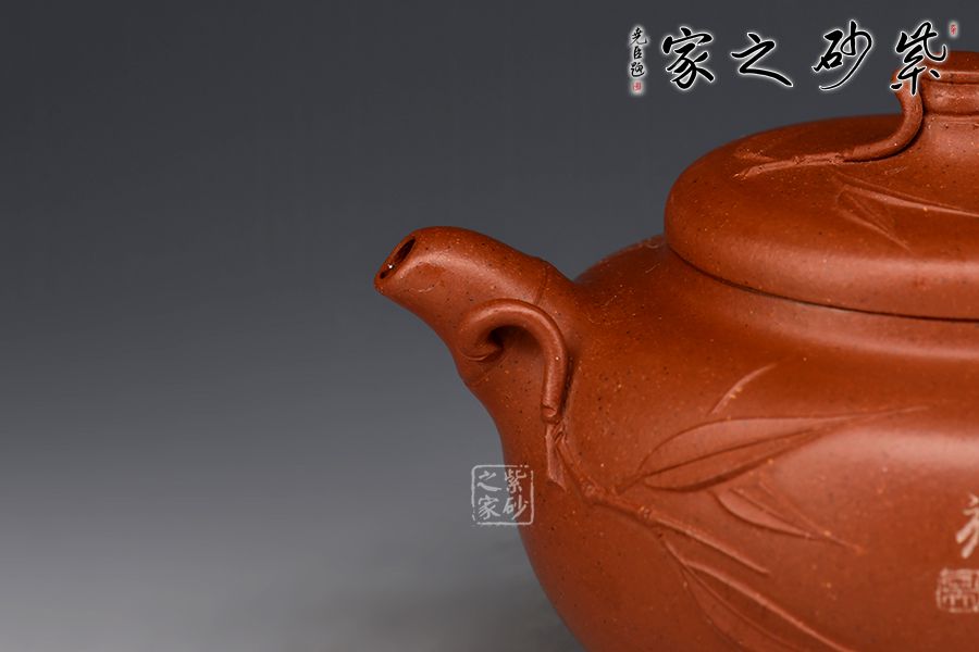 壺身飽滿圓潤(rùn),加底設(shè)計(jì),端莊挺拔。竹節(jié)壺把飽滿短小,竹葉裝飾飄然,壺把以竹節(jié)造型出現(xiàn),執(zhí)握不滑手。大口蓋好投茶,竹節(jié)壺鈕,小巧可愛(ài)。