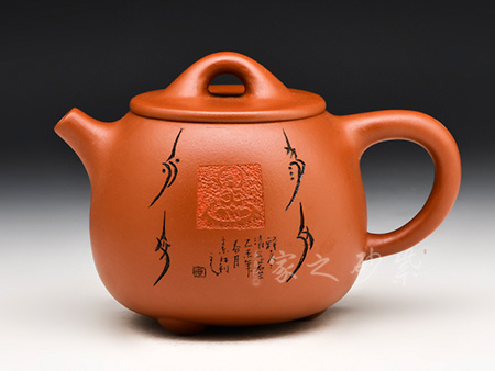多年的學(xué)習(xí)積累,裝飾風(fēng)格自成體系,創(chuàng)作了系列化裝飾作品,成為全方面將中國(guó)文字學(xué)和傳統(tǒng)文化融于紫砂藝術(shù)的第一人。相較于紫砂藝術(shù)中常用文字,夏素紅老師所用文字裝飾效果更有唯一性和獨(dú)特性。中國(guó)稀有、失傳文字學(xué)的使用彰顯其作品有強(qiáng)烈的個(gè)人風(fēng)格,亦是復(fù)古風(fēng)的代表性佳器。