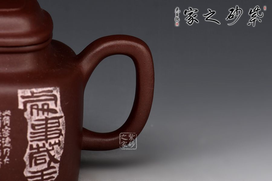 多年的學習積累,裝飾風格自成體系,創(chuàng)作了系列化裝飾作品,成為全方面將中國文字學和傳統(tǒng)文化融于紫砂藝術的第一人。相較于紫砂藝術中常用文字,夏素紅老師所用文字裝飾效果更有唯一性和獨特性。中國稀有、失傳文字學的使用彰顯其作品有強烈的個人風格,亦是復古風的代表性佳器。