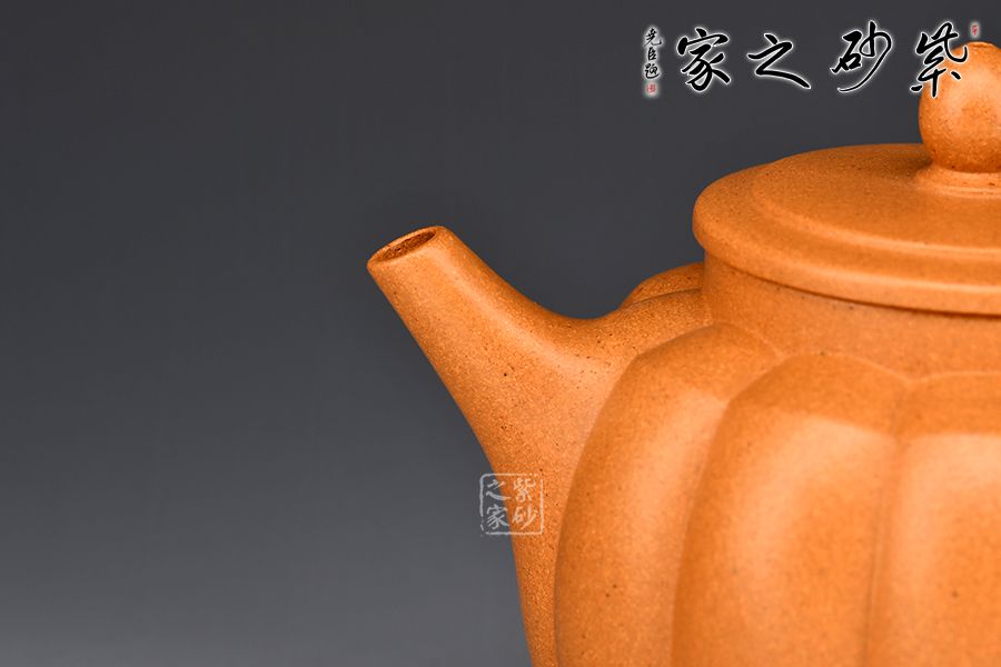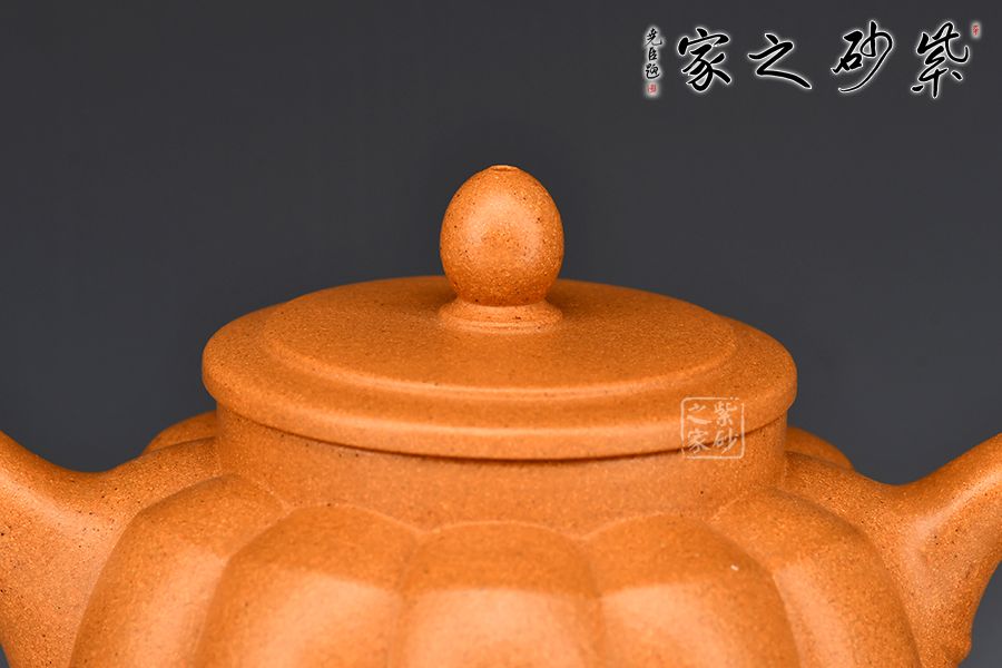 此作清雅自芳,整體飽滿的外觀,給人一種凝實之感,顯得內(nèi)斂而又沉穩(wěn)。壺身由筋紋棱線組成,蓋與口瓣吻合,筋紋從壺肩舒展過渡至壺體,腴而不腫,工藝嚴(yán)謹(jǐn),耐人尋味。