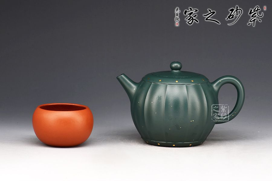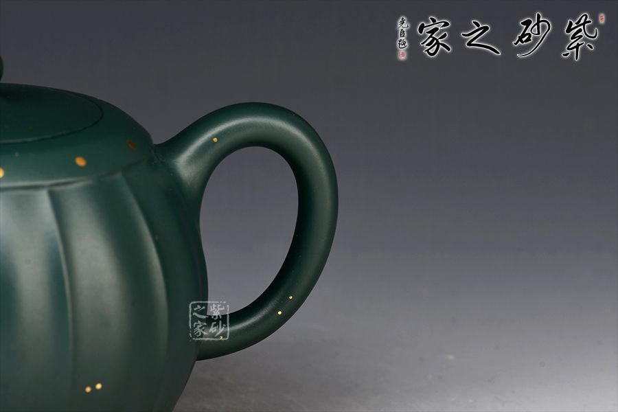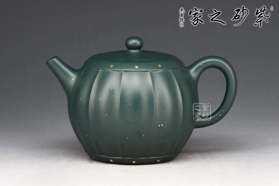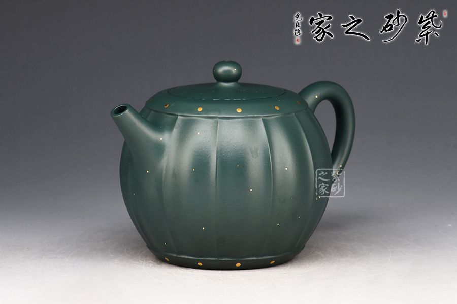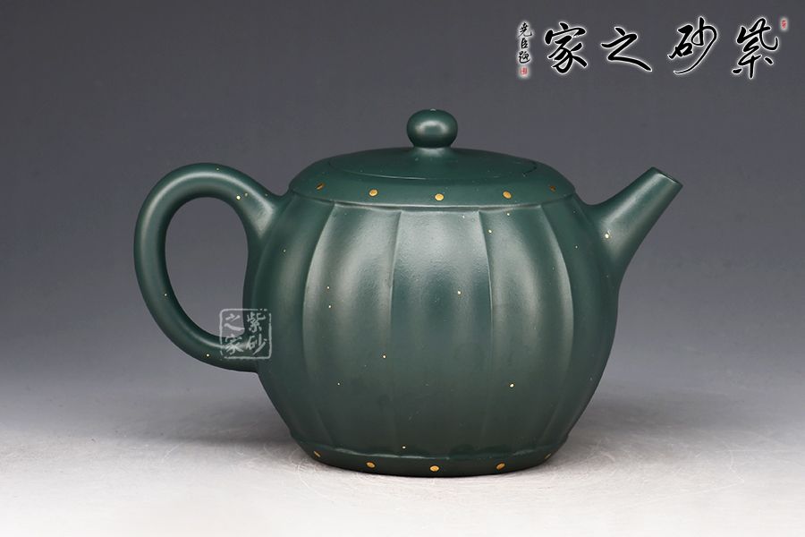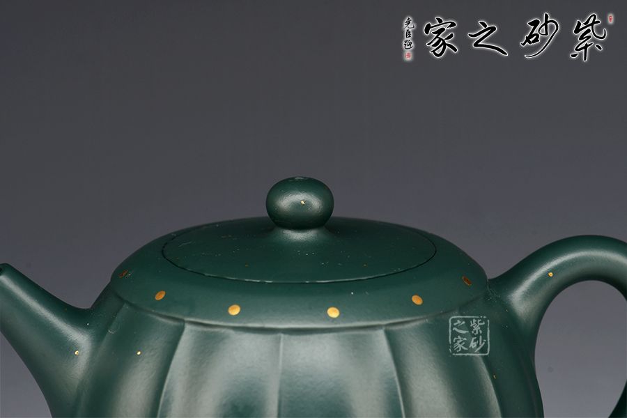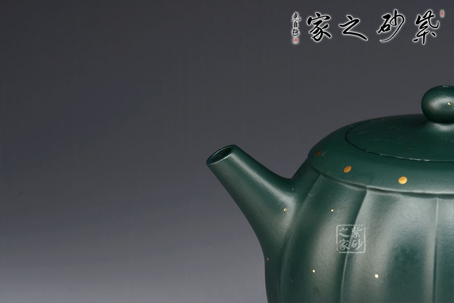 此壺為作者選用原礦蘇門(mén)答臘青精制而成,民國(guó)綠之泥色,盡顯古樸韻味。整壺由范澤鋒大師監(jiān)制,湯先武老師制作。壺身呈鼓形,筋紋流暢勻稱(chēng),獨(dú)家特色泥料,戧金裝飾優(yōu)雅尊貴,一鼓作氣,再而衰,三而竭。