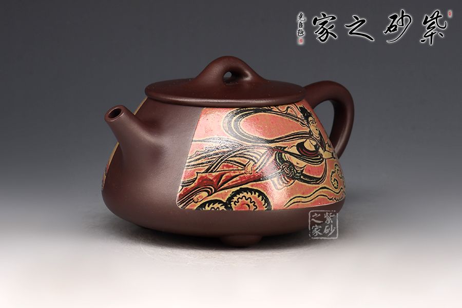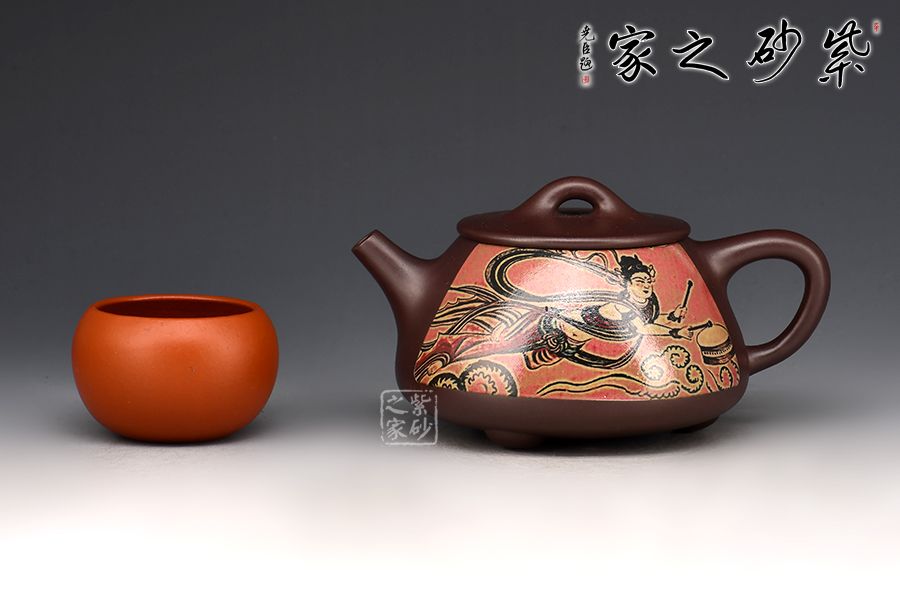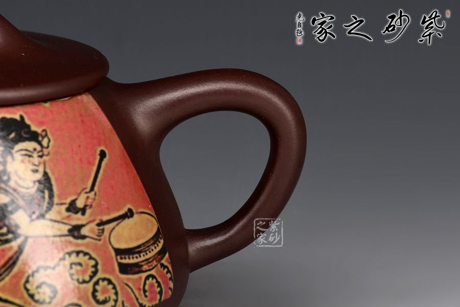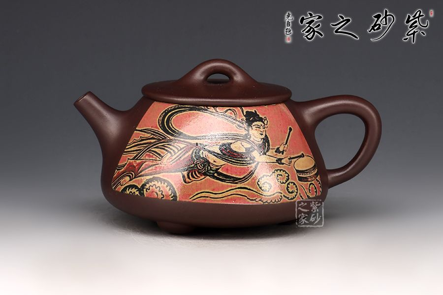 敦煌飛天,指的是壁畫中的飛仙亦稱為飛天。此石瓢壺將敦煌文化融入到喝茶器皿中,賦予了茶文化更多內(nèi)涵。