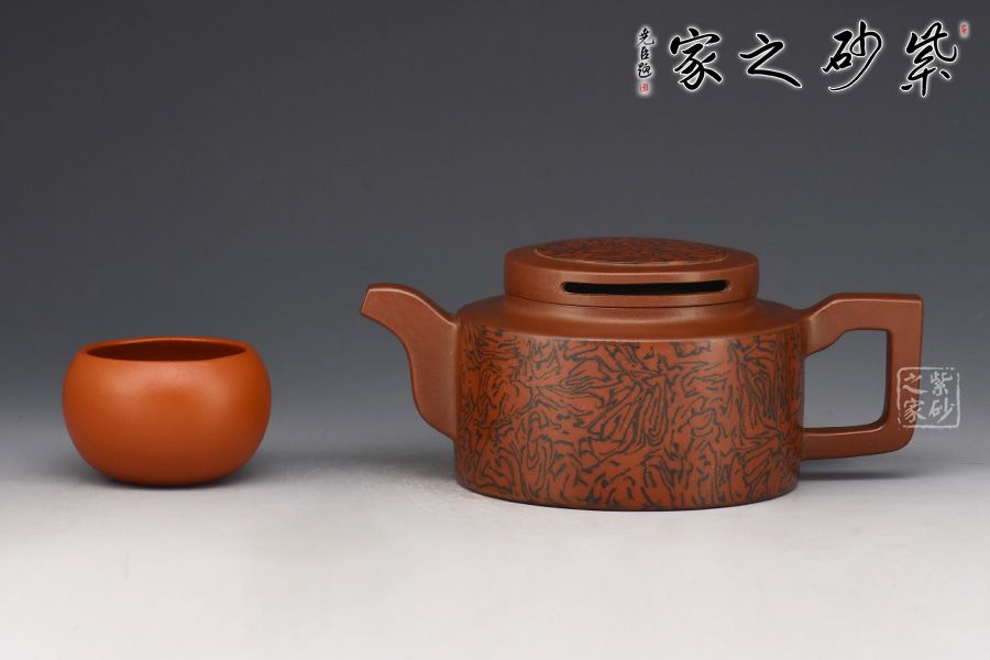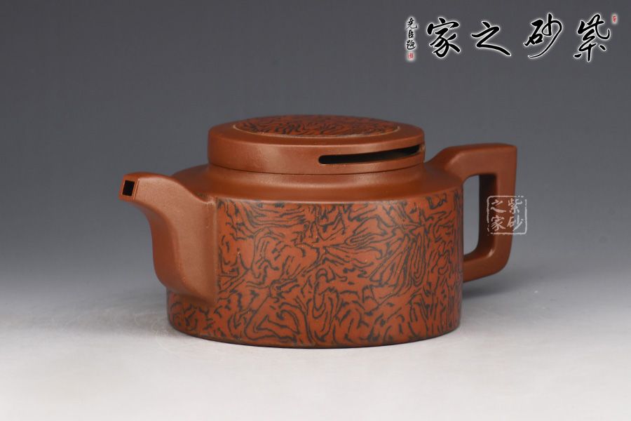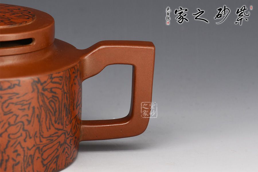 壺身為圓柱造型,工整圓滑,大方得體。絞泥裝飾逼真美觀,讓此石磨更顯得栩栩如生。方把和彎流壺嘴左右對稱,線條一直一曲,相映成趣。壺蓋又是一個小圓柱體,對接嚴絲合縫,自然美觀。是賞壺、玩壺、送禮的佳品!