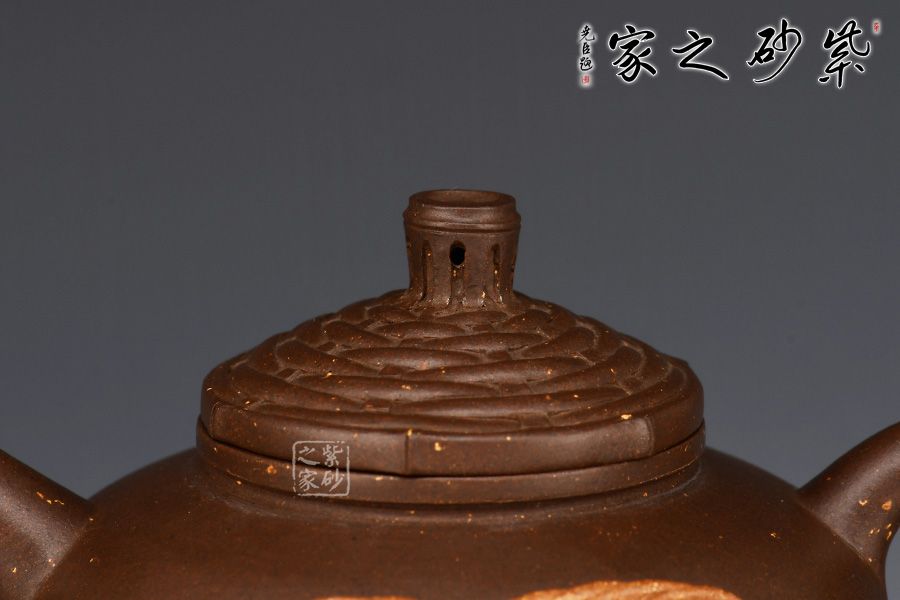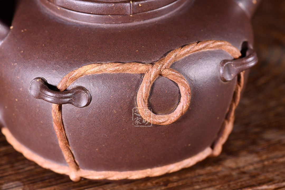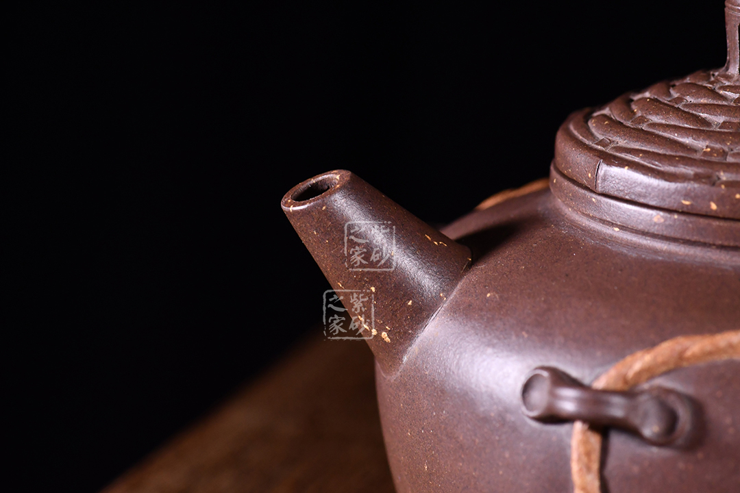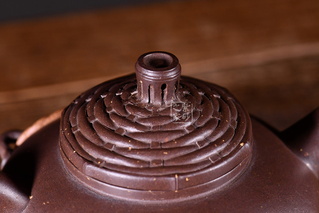 此笠翁壺敦厚樸實(shí)的造型,壺身圓潤(rùn)有型,壺嘴直流,仿佛漁翁魚(yú)竿,垂釣江面。整壺又像是一頂草帽哦,凸起的壓蓋為帽檐,壺身的裝飾樸實(shí)無(wú)華,隱士情懷凸顯無(wú)疑。原礦紫泥制作,色澤端莊古樸,有天然去雕飾之美。