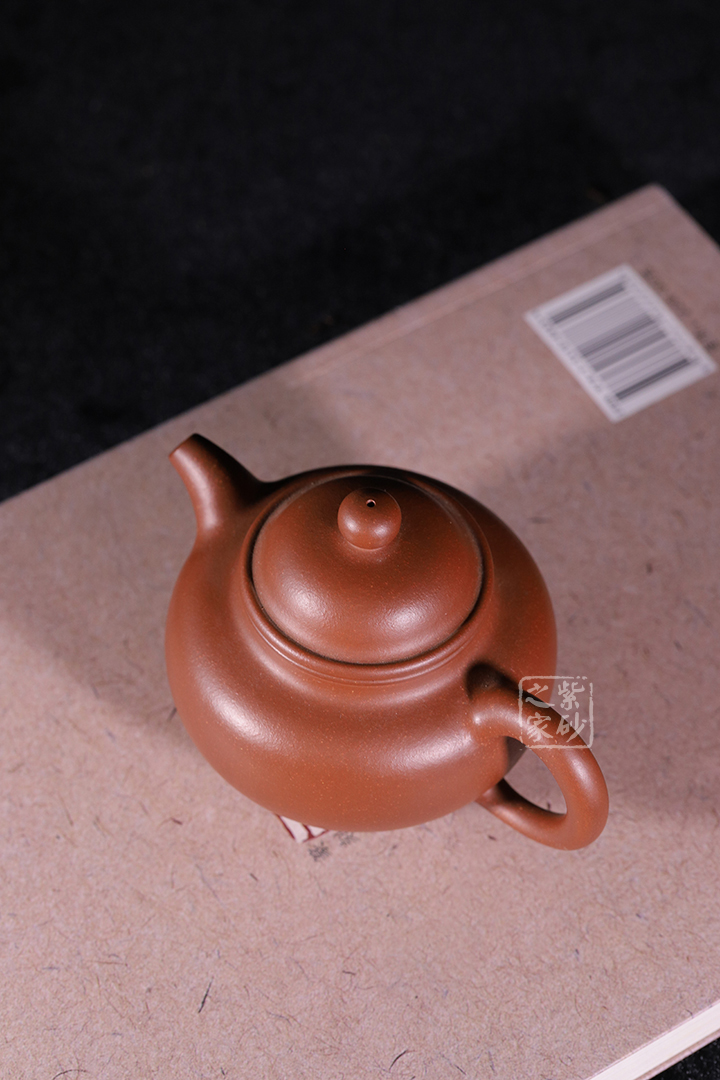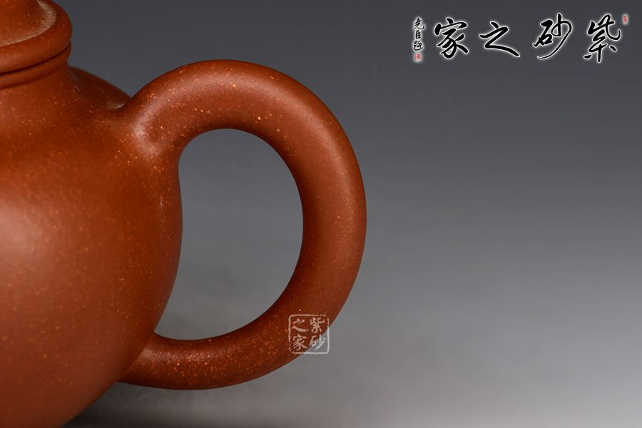 陸君老師此款掇球在繼承傳統(tǒng)的基礎(chǔ)上又有自己的風(fēng)格特點(diǎn),泥質(zhì)細(xì)密,瑩潤可愛。造型簡練、大方,球腹,矮頸,短流,把如大耳,流把勻稱自然,口蓋直而緊縫,蓋上設(shè)小球鈕。壺形突出掇,素心素面,樸拙渾厚,造工精細(xì),美妙絕倫。